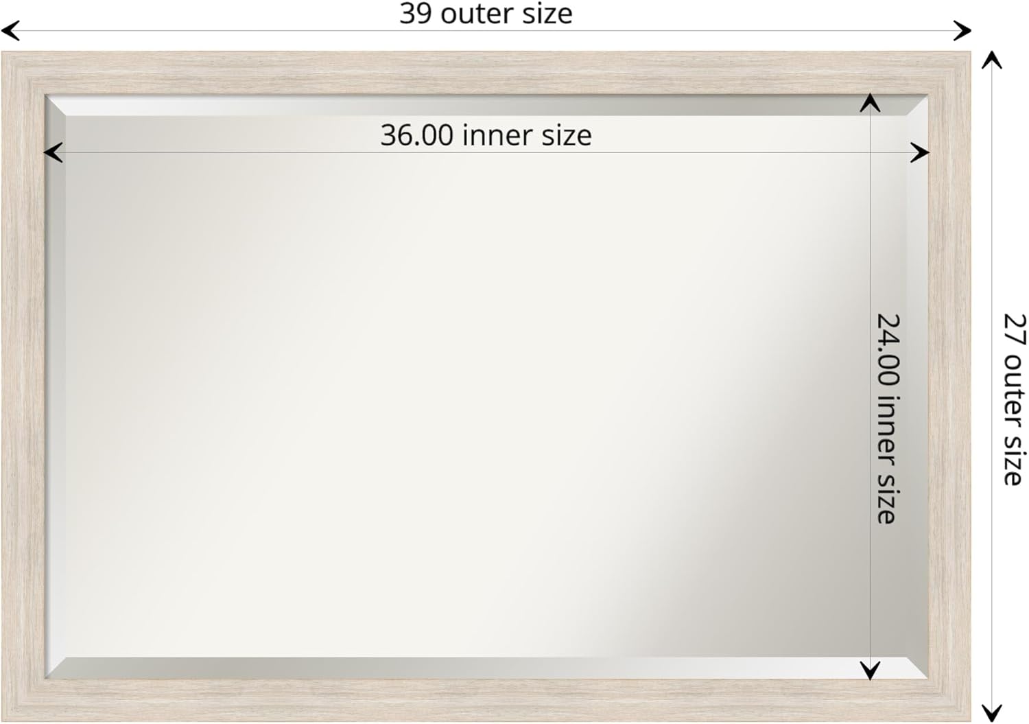 - MIRROR DETAILS: This mirror features premium glass for a clear, undistorted image and is finished with a beveled edge to give the glass a decorative touch. The overall size of this bathroom mirror measures exactly 39 x 27 inches, including the frame. Its reflective area measures 36 x 24 inches.