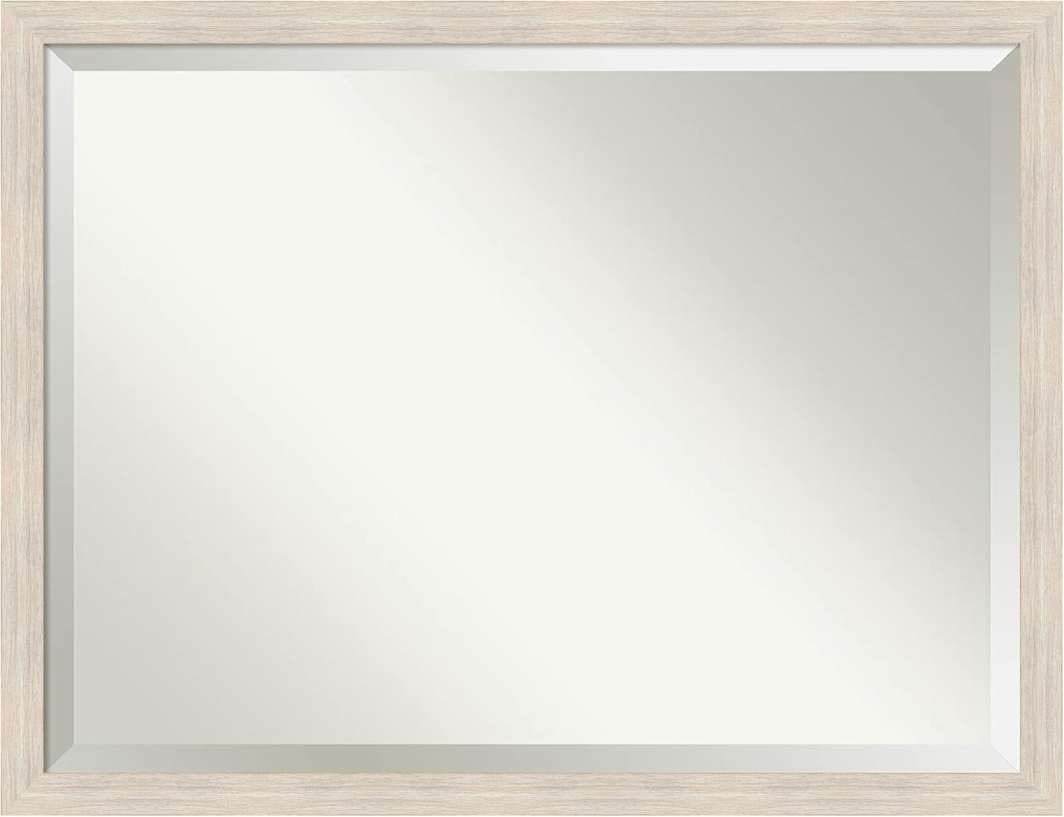 Amanti Art White Bathroom Mirror for Over Sink, 33x43 Hardwood White Wash Narrow Rectangle Vanity Mirror, X-Large Rustic Farmhouse Wood Frame, Hangs Horizonally and Vertically, Bathroom Wall Decor