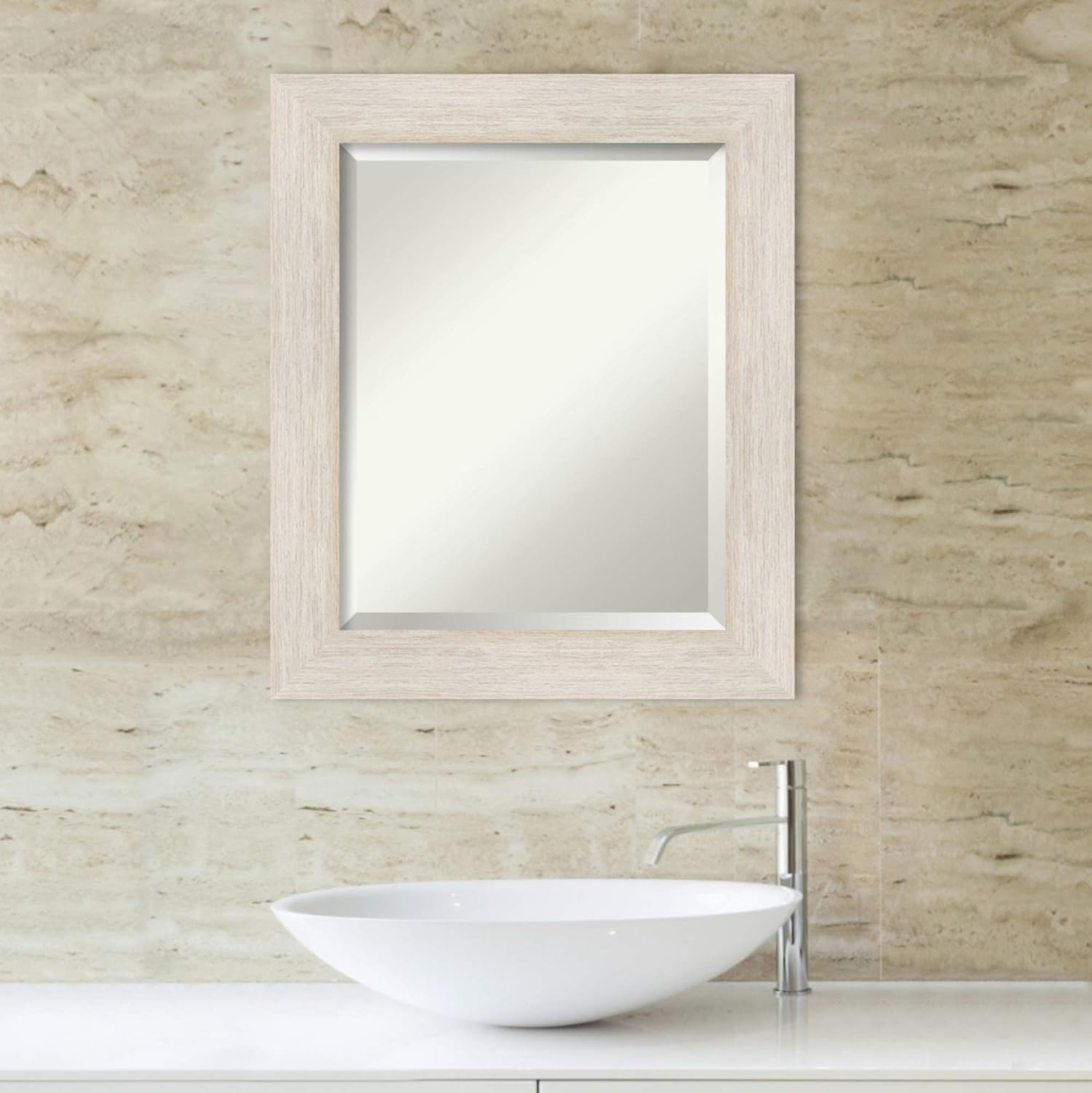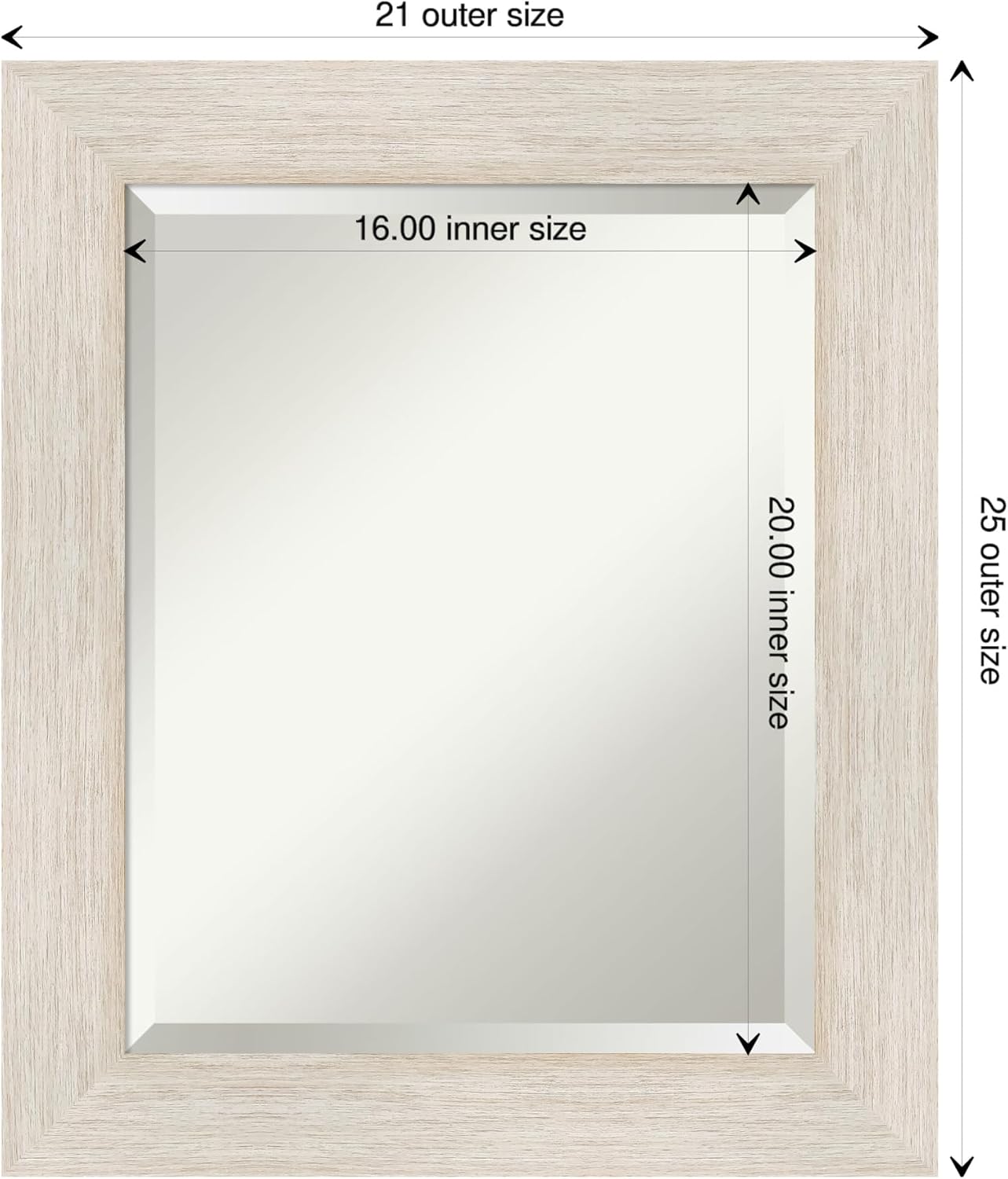 Amanti Art White Bathroom Mirror for Over Sink, 25x21 Hardwood White Wash Rectangle Vanity Mirror, Small Rustic Farmhouse Wood Frame, Hangs Horizonally and Vertically, Bathroom Wall Decor, Beveled