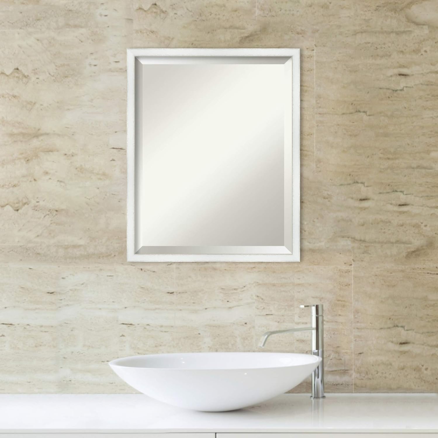 - MIRROR DETAILS: This mirror features premium glass for a clear, undistorted image and is finished with a beveled edge to give the glass a decorative touch. The overall size of this bathroom mirror measures exactly 17.25 x 21.25 inches, including the frame. Its reflective area measures 16 x 20 inches.