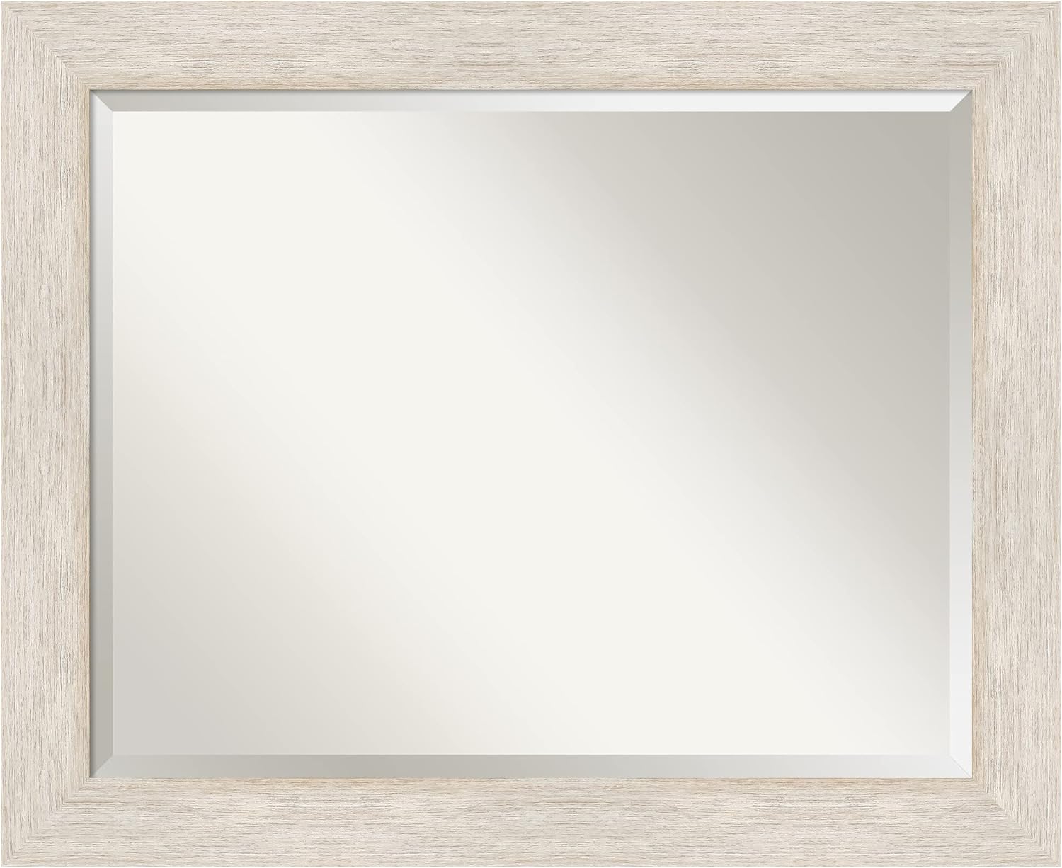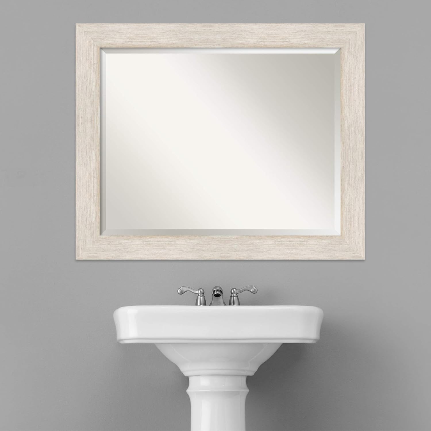 Amanti Art White Bathroom Mirror for Over Sink, 27x33 Hardwood White Wash Rectangle Vanity Mirror, Large Rustic Farmhouse Wood Frame, Hangs Horizonally and Vertically, Bathroom Wall Decor, Beveled
