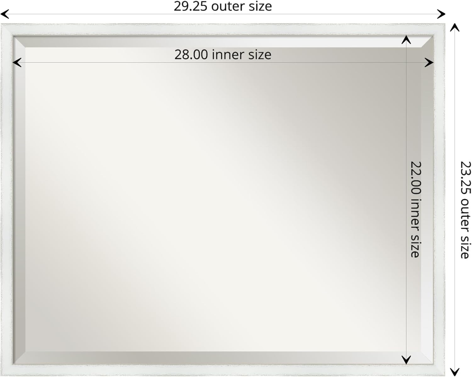 - MIRROR DETAILS: This mirror features premium glass for a clear, undistorted image and is finished with a beveled edge to give the glass a decorative touch. The overall size of this bathroom mirror measures exactly 29.25 x 23.25 inches, including the frame. Its reflective area measures 28 x 22 inches.