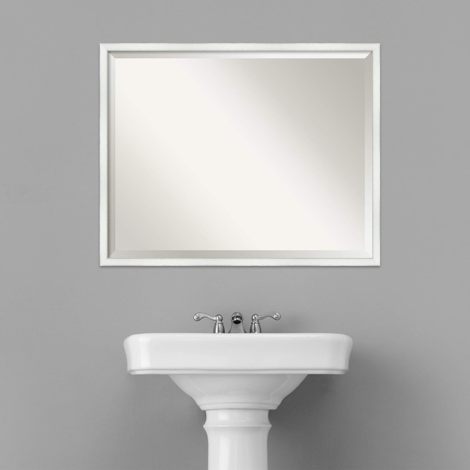 Amanti Art White Bathroom Mirror for Over Sink, 23x29 Breeze Distressed White Rectangle Vanity Mirror, Large Country Rustic Wood Frame, Hangs Horizonally and Vertically, Bathroom Wall Decor, Beveled