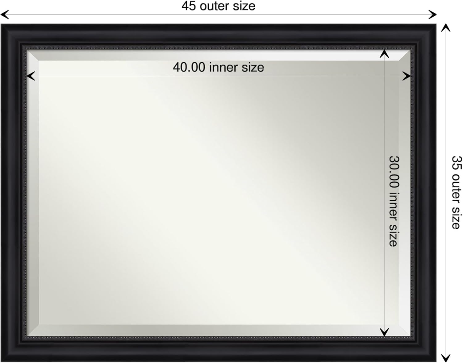 - MIRROR DETAILS: This mirror features premium glass for a clear, undistorted image and is finished with a beveled edge to give the glass a decorative touch. The overall size of this bathroom mirror measures 45 x 35 inches, including the frame. Its reflective area measures 40 x 30 inches.