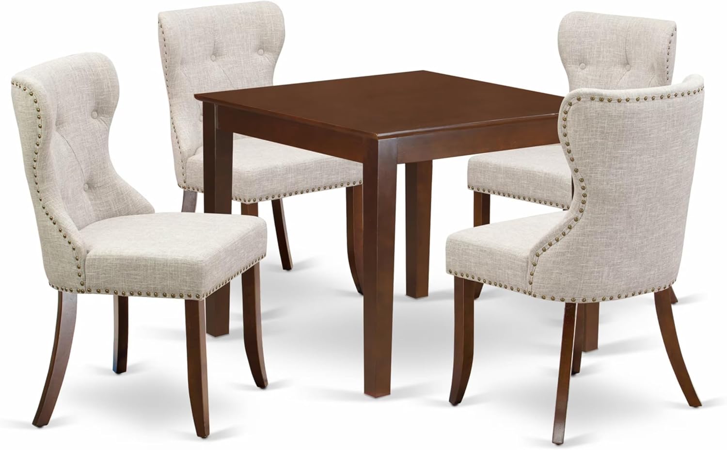 East West Furniture OXSI5-MAH-35 5 Piece Kitchen Table & Chairs Set Includes a Square Dining Room Table and 4 Doeskin Linen Fabric Parson Dining Chairs, 36x36 Inch, Mahogany