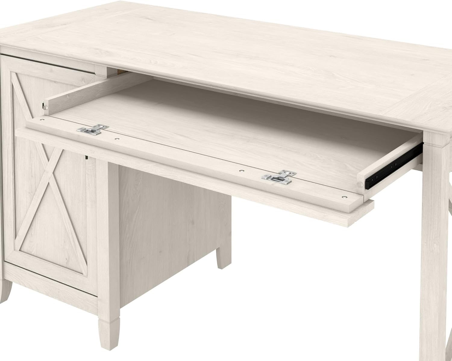 Bush Furniture Key West Computer Desk with Storage, Farmhouse PC Table for Home Office in Linen White Oak, 54W x 24D