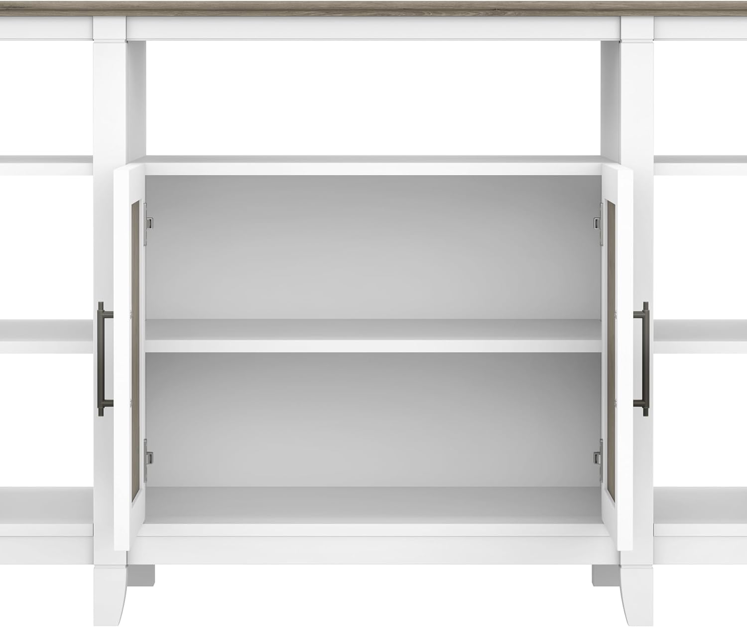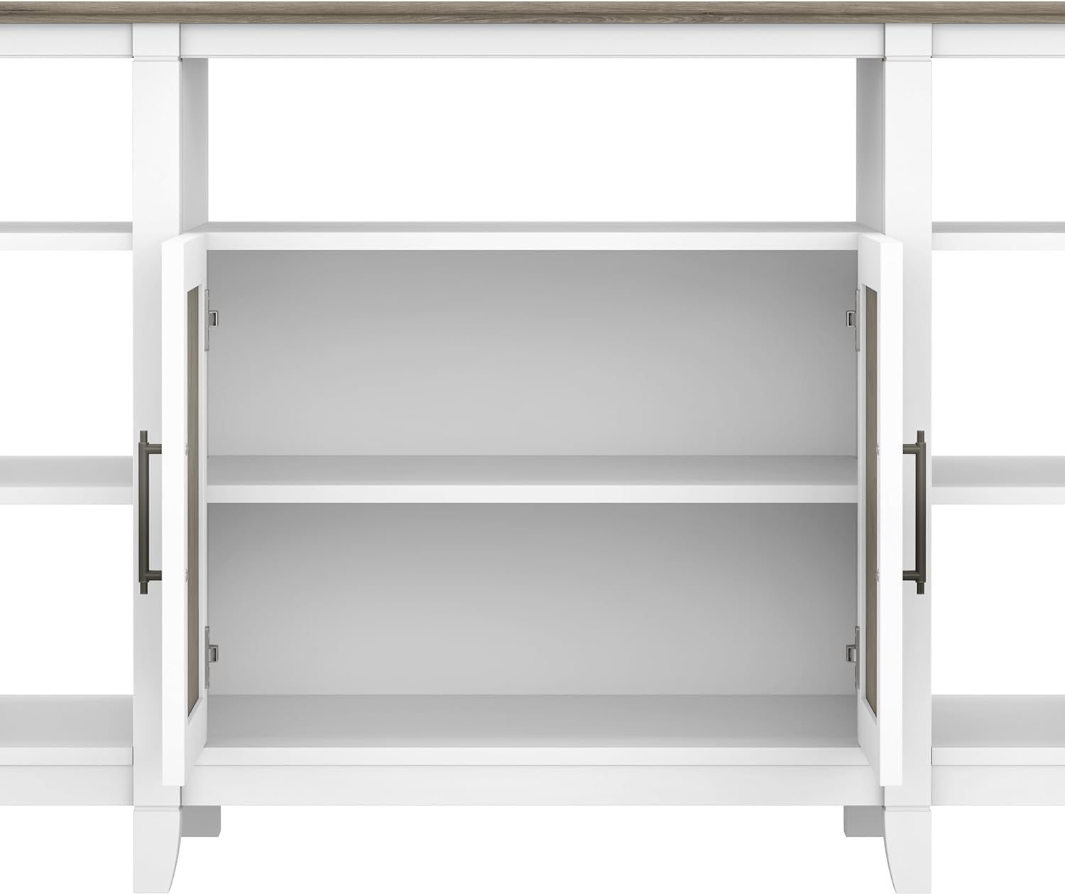 Bush Furniture Key West Tall TV Stand for 65 Inch TV in Pure White and Shiplap Gray, Farmhouse Entertainment Center with Storage