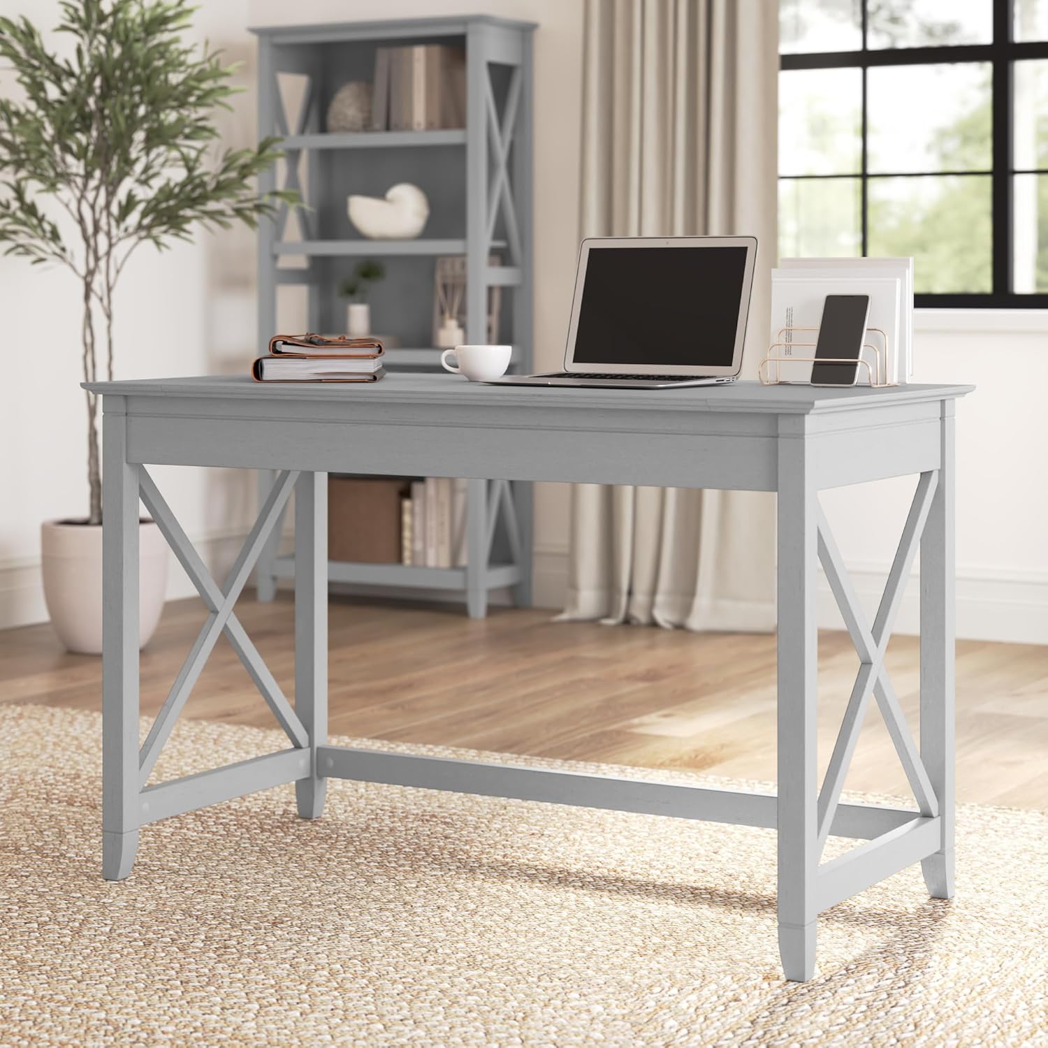 Bush Furniture Key West 48W Writing Desk in Cape Cod Gray