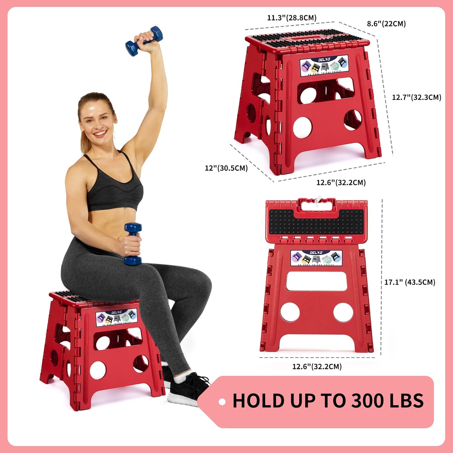 Delxo Folding Step Stool,Non-Slip Stool 13 inch Height Premium Heavy Duty Foldable Stool,Kitchen Garden Bathroom Steppingstool 1 Pack in Red,Dotted Texture