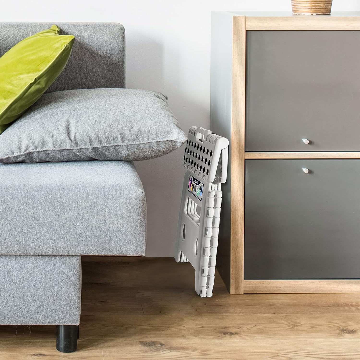 - Space Save Fold Up Step Stool : It folded up only with 1.2" wide so that you can storage this plastic collapsible step stool to any narrow gap in kitchen,bathroom,rv