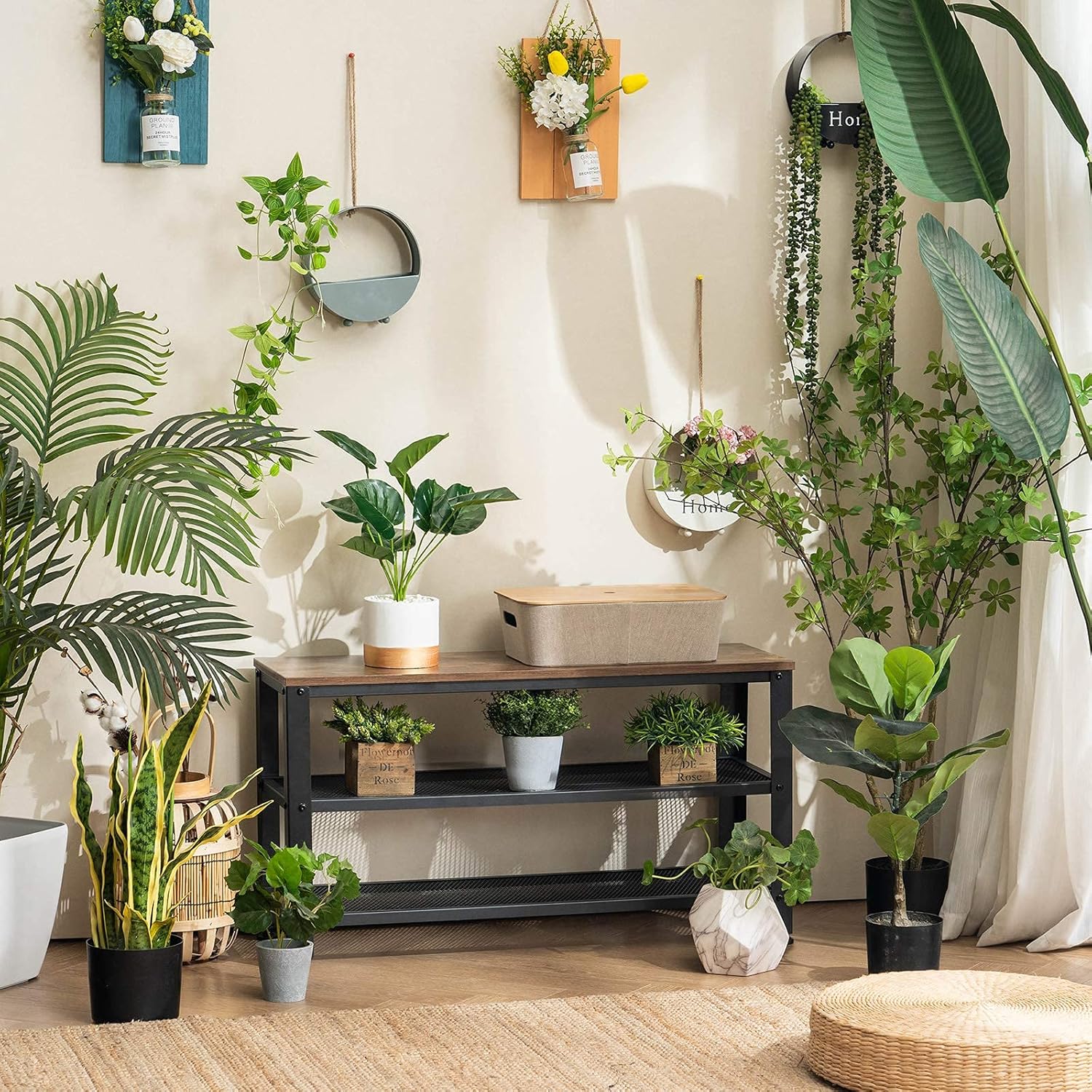 - [Sturdy Shoe Rack] - The storage bench is made of sturdy steel and particle board construction, so you don't have to worry about wood cracking, bending, or rusting issues. It can support up to 300 pounds, allowing you to sit on the entryway bench and comfortably put on your shoes without any rush.