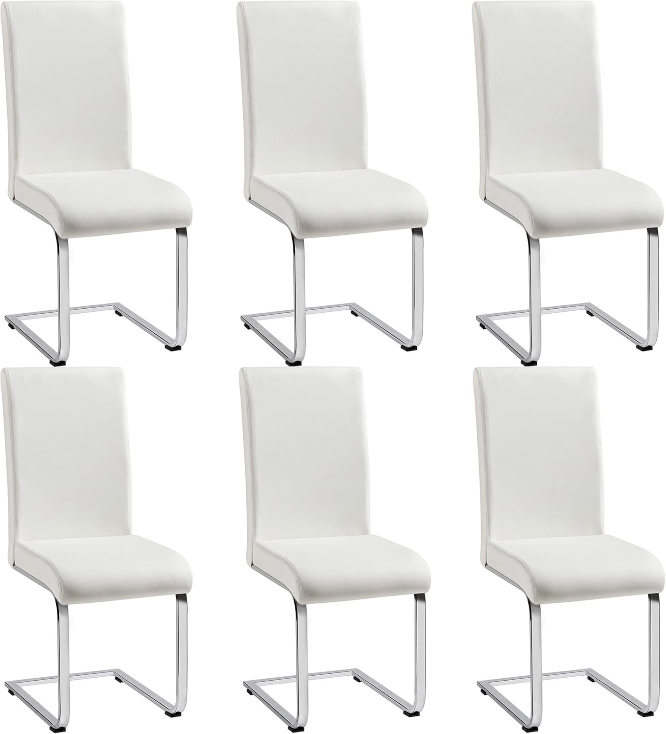 Yaheetech Dining Chairs Set of 6 Modern Faux Leather Upholstered Dining Room Chairs with High Back and Metal Chrome Legs for Kitchen/Living Room/Restaurant, White