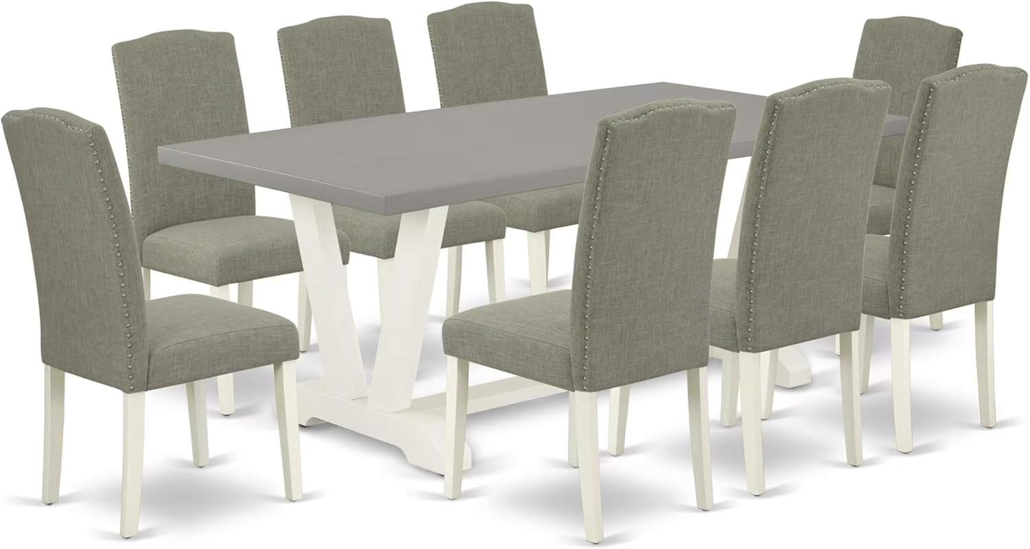 East West Furniture V097EN206-9 9 Piece Dining Room Set Includes a Rectangle Kitchen Table with V-Legs and 8 Dark Shitake Linen Fabric Upholstered Parson Chairs, 40x72 Inch, Multi-Color