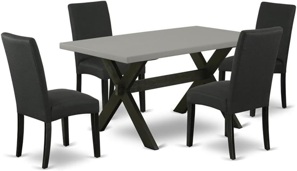 East West Furniture X696DR124-5 5 Piece Dining Table Set for 4 Includes a Rectangle Kitchen Table with X-Legs and 4 Black Color Linen Fabric Upholstered Chairs, 36x60 Inch, Multi-Color