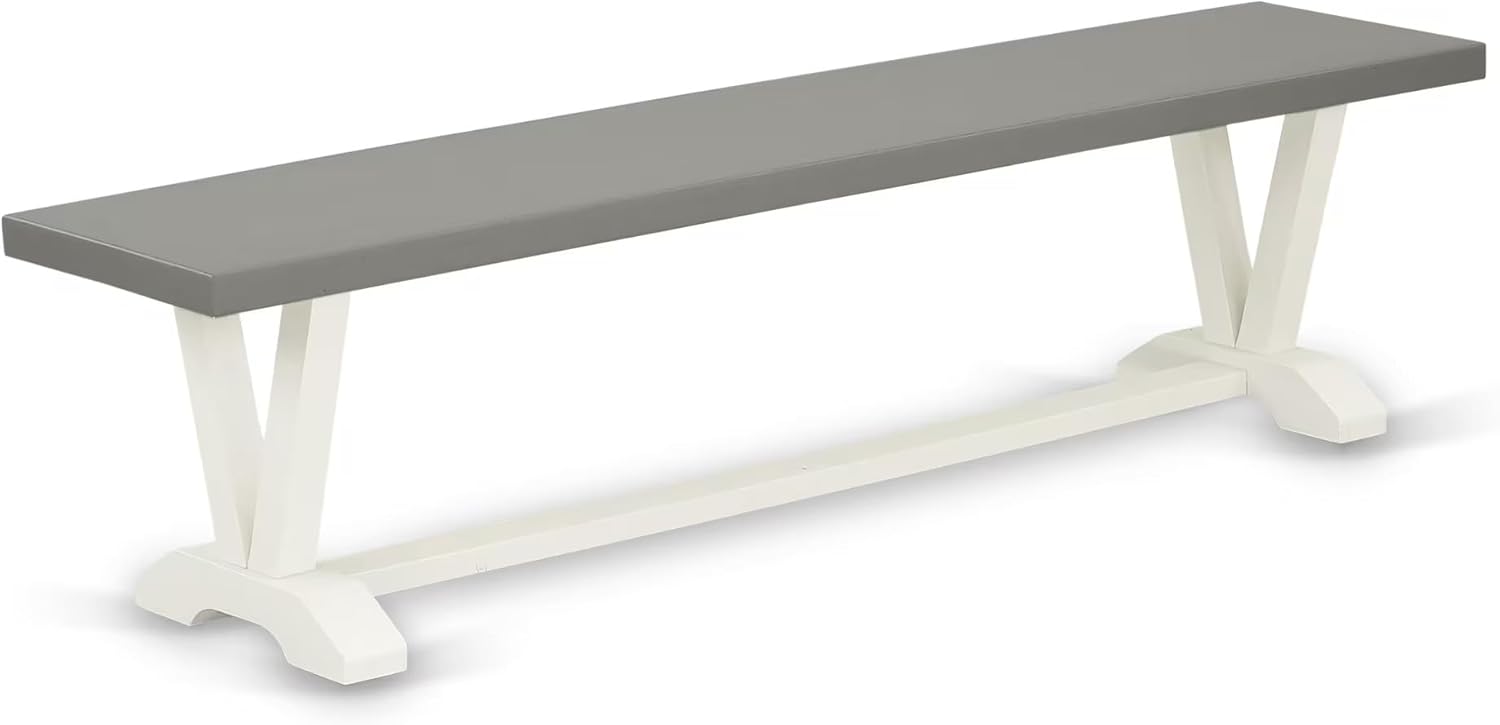 - MODERN DINING SET FINISH: Our dining table is composed of a rectangular top crafted from cement, supported by legs made of wire-brushed off-white wood. The upholstered dining chairs exhibit a refined off-white finish on their frames, with linen fabric seats and elegant baby blue button-tufted chair backs. The dining bench boasts a cement-colored top and wire-brushed off-white legs.