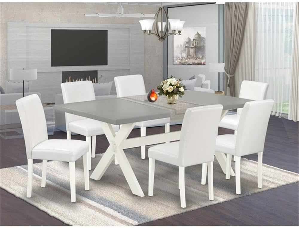 East West Furniture X097AB264-7 7 Piece Dining Table Set Consist of a Rectangle Dining Room Table with X-Legs and 6 White Faux Leather Upholstered Chairs, 40x72 Inch, Multi-Color