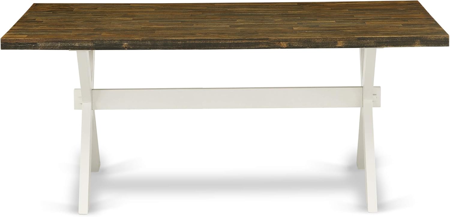 - KITCHEN TABLE SET FINISH: Our dining table set showcases a Distressed Jacobean rectangular tabletop combined with Wire Brushed Linen White wooden cross legs. The kitchen chairs, upholstered in Linen Fabric with a delightful Baby Blue hue, beautifully match the kitchen table set, featuring a Linen White finish frame. This captivating blend of colors for both the dinner table and dining chairs seamlessly enhances the aesthetic of any room.