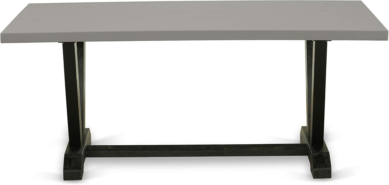 - DINNER TABLE SET FINISH: Our exquisite dining table showcases a cement rectangular tabletop and sleek black wooden legs with a wire-brushed finish. The kitchen chairs are equally charming, featuring Mineral Blue Linen Fabric and matching black wooden legs. Comfort is paramount with cushioned chair seats and padded backs. This wooden dining table seamlessly complements any dining area's decor.