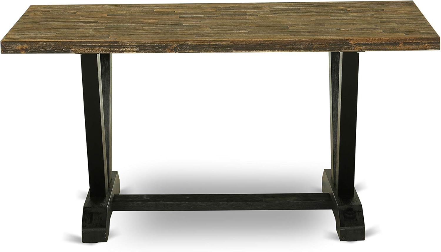 East West Furniture V676DR124-5 5 Piece Dinette Set for 4 Includes a Rectangle Dining Table with V-Legs and 4 Black Color Linen Fabric Parson Dining Room Chairs, 36x60 Inch, Multi-Color