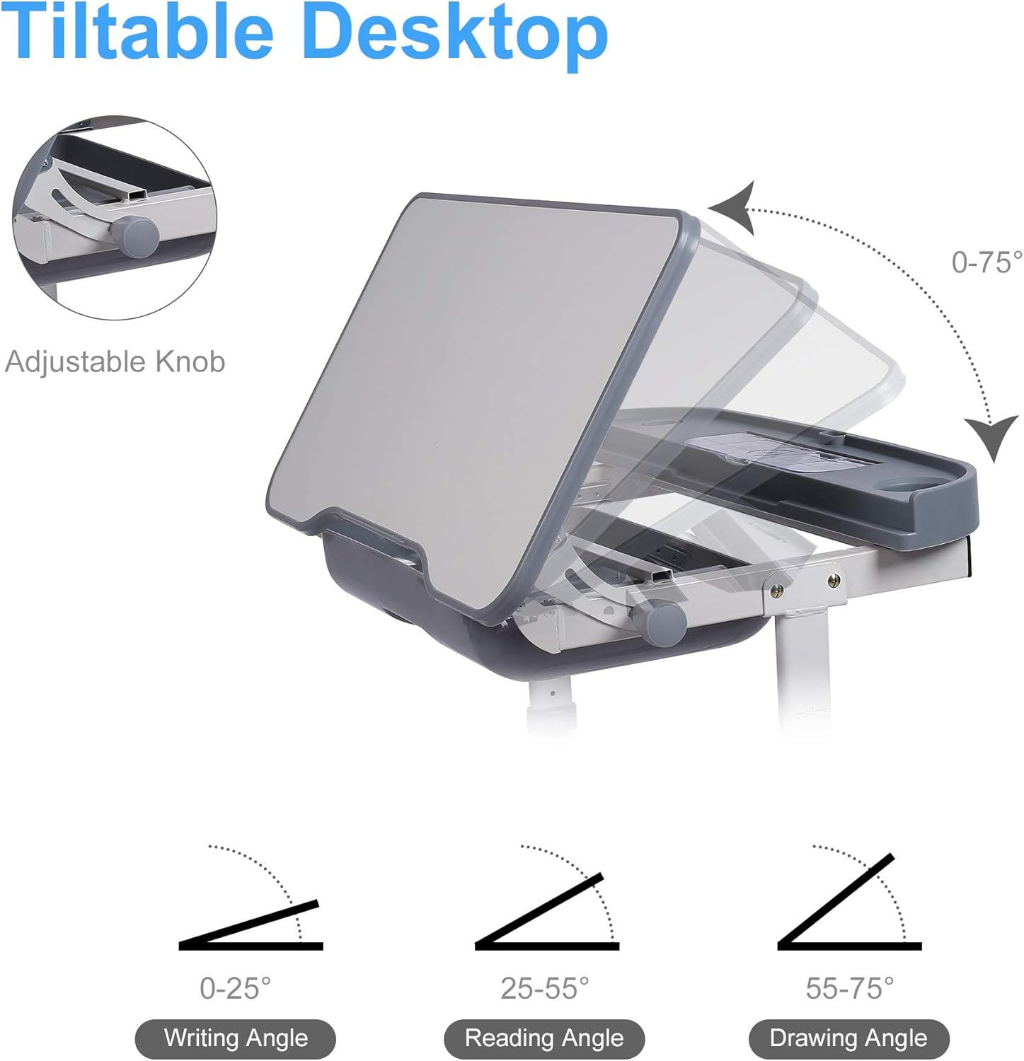 - ☘️【Tilted Desktop】The 27.5”x19.6”desktop can be tilted from 0-75° ,This satisfying different needs of desktop angle for writing, doing homework, reading and drawing. Prevent hunchback and promotes healthy posture to children and protect their eyesight.