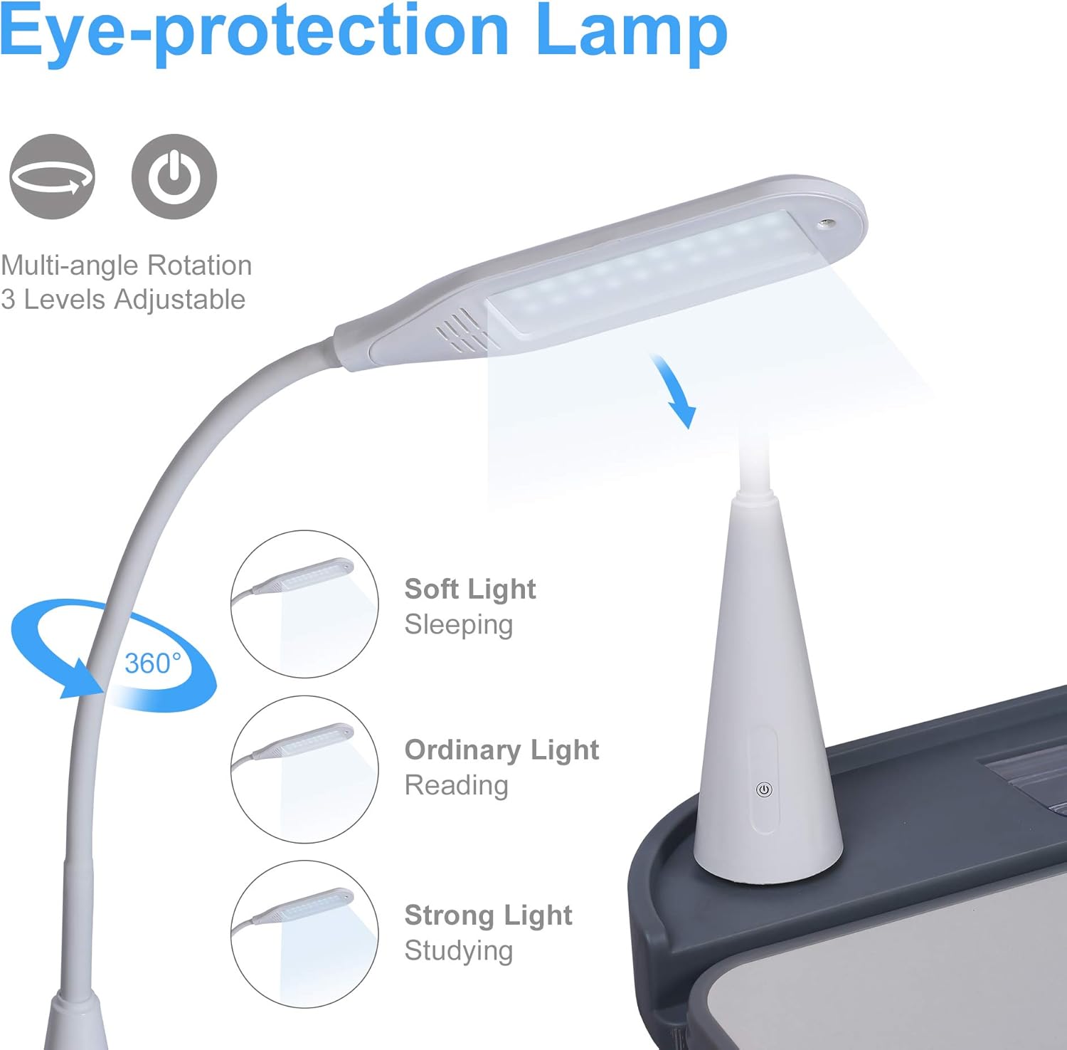 - ☘️【LED Lamp & Book Stand】LED lamp is included with 3 levels of brightness, According to the needs of children, they can freely adjust the direction and brightness for learning or reading. The rotatable bookshelf is used to fix the books and keep a proper distance to protect children's eyesight