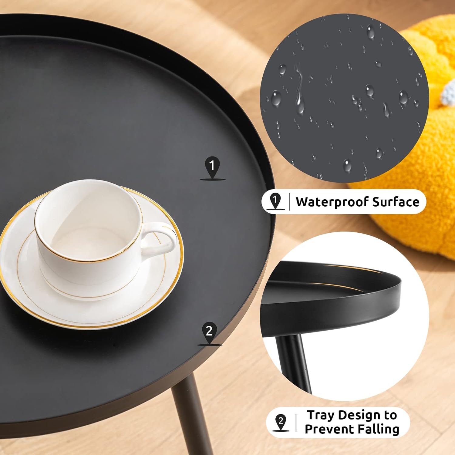 Apicizon 16" Round Side Table, Black End Table for Living Room, Bedside, Mid Century Modern Coffee Table or Circle Accent Table for Small Spaces, Metal Nightstand (Black)
