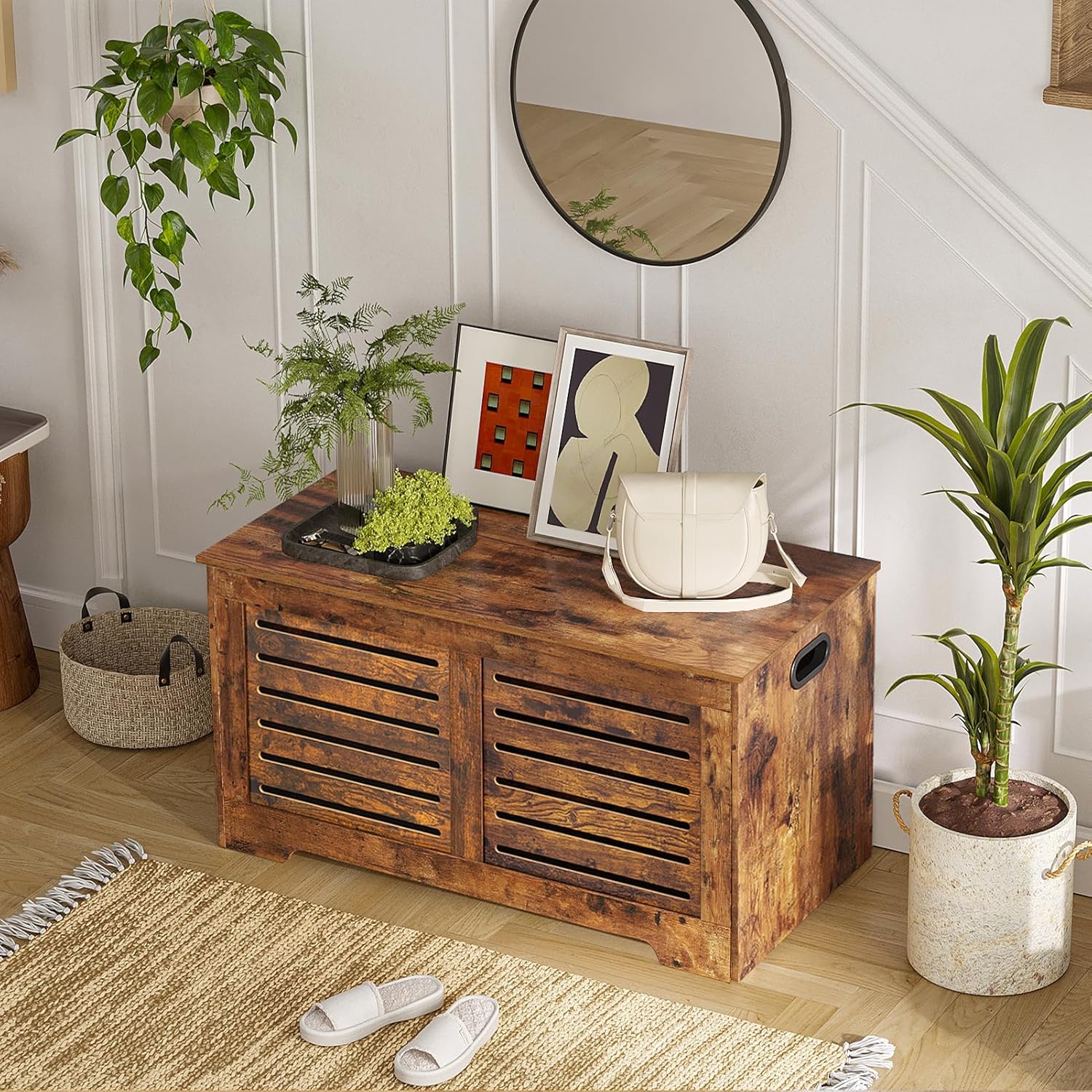 - 【Ideal Home Decor】Rustic brown and exquisite shutter doors of the blanket chest bring a perfect encounter of retro and elegance to your home. Vintage design fits with any home décor and brightens your room. It is well-suited for playroom, living room, bedroom, entryway, etc