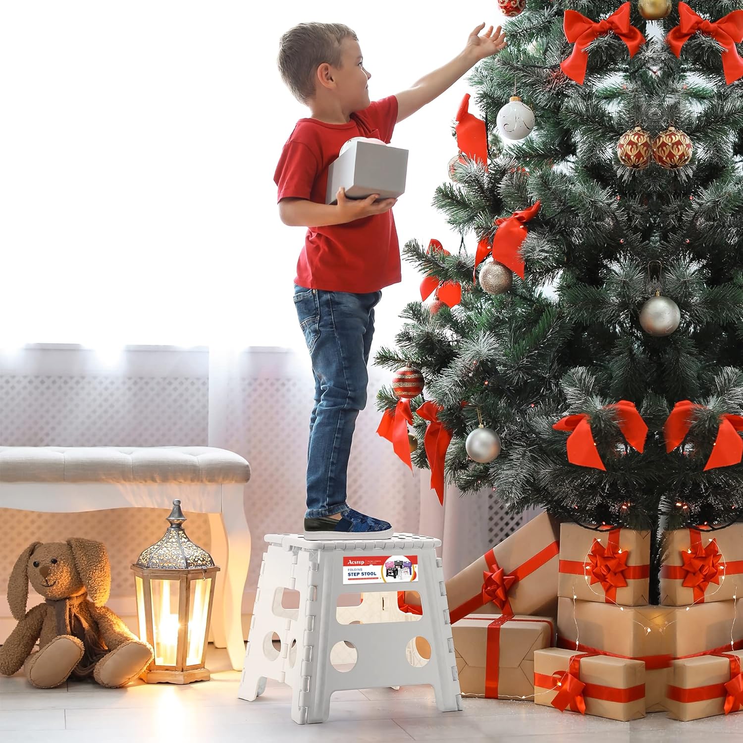 - ✔【QUALITY GUARANTEE】-Keep using quality materials to ensure the best quality.Our folding step stool has been approved by EN 14183 Certificate,absolutely safe for your families.【Note】For safety's sake,when we need to stand on it and reach up a high place.Please standing on the stool must keep both feet on the middle of the stool and don't shake wildly.