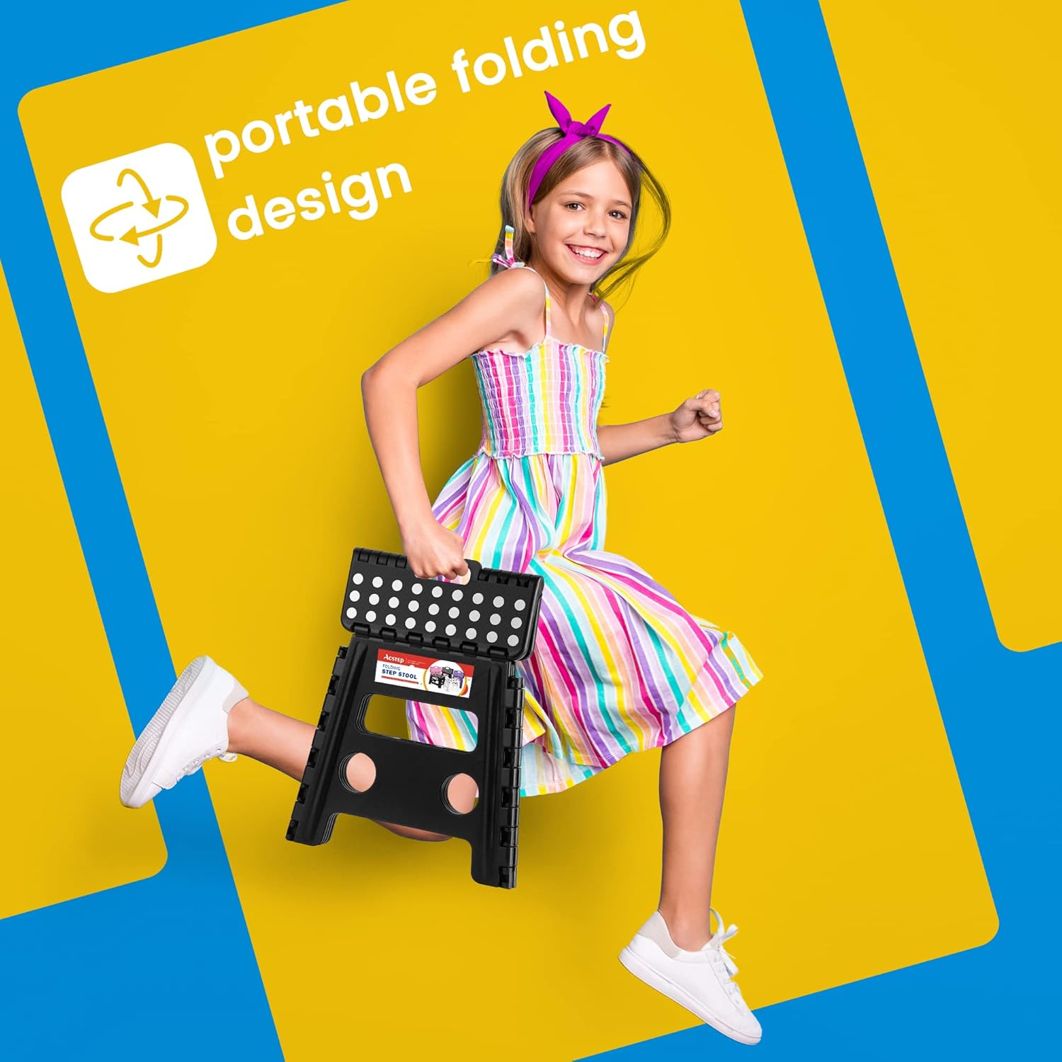 ACSTEP Folding Step Stool - 13 inch Height Premium Heavy Duty Foldable Stool for Adults, Kitchen Garden Bathroom Stepping Stool (1 Pack) Black