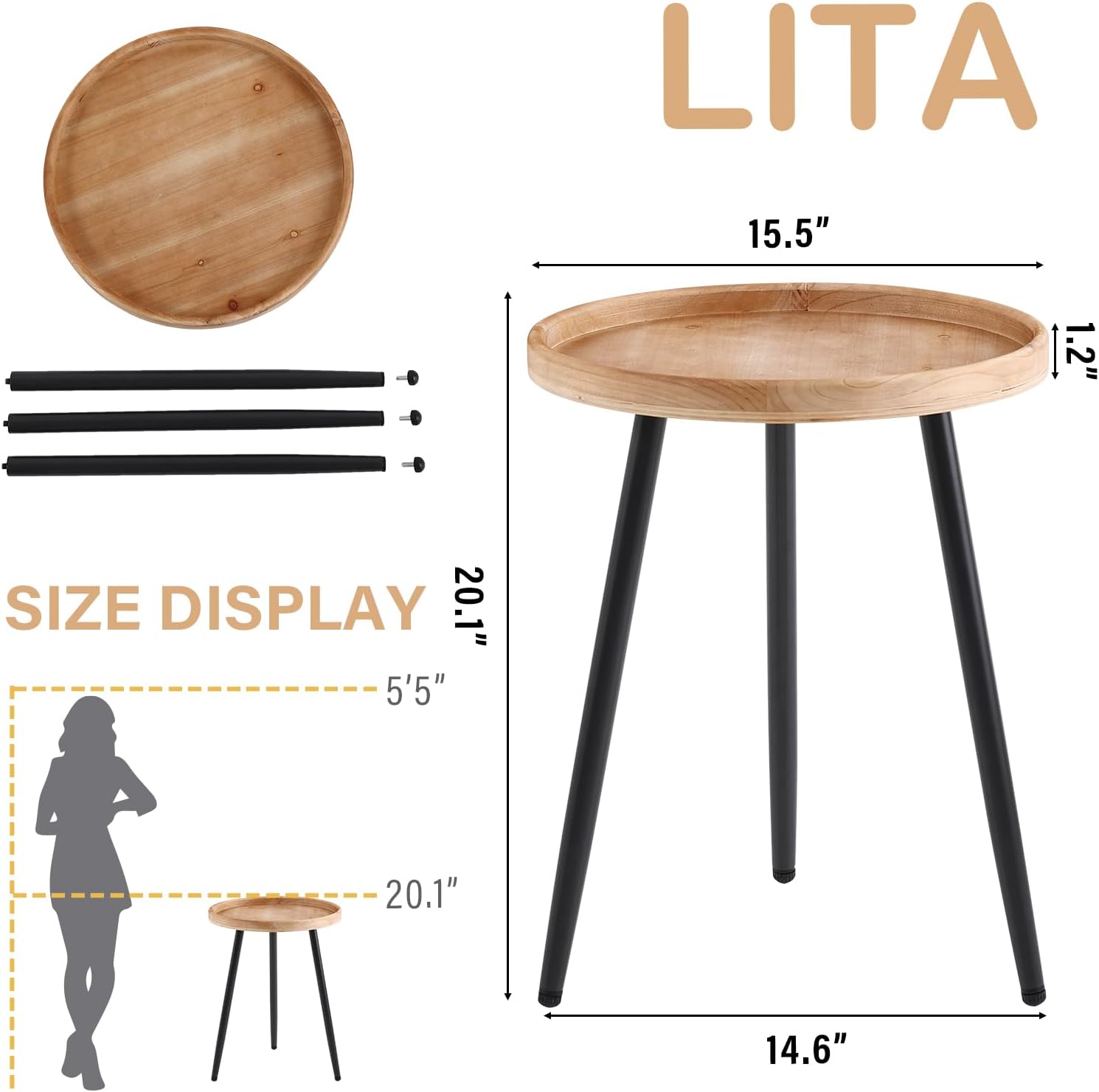 - 【Product Details】Wooden tray side table with black metal stand end. Tray dimension: 18.9” Dia; total height: 20.1” H. Textured desktop fits perfect integration with your home decoration.