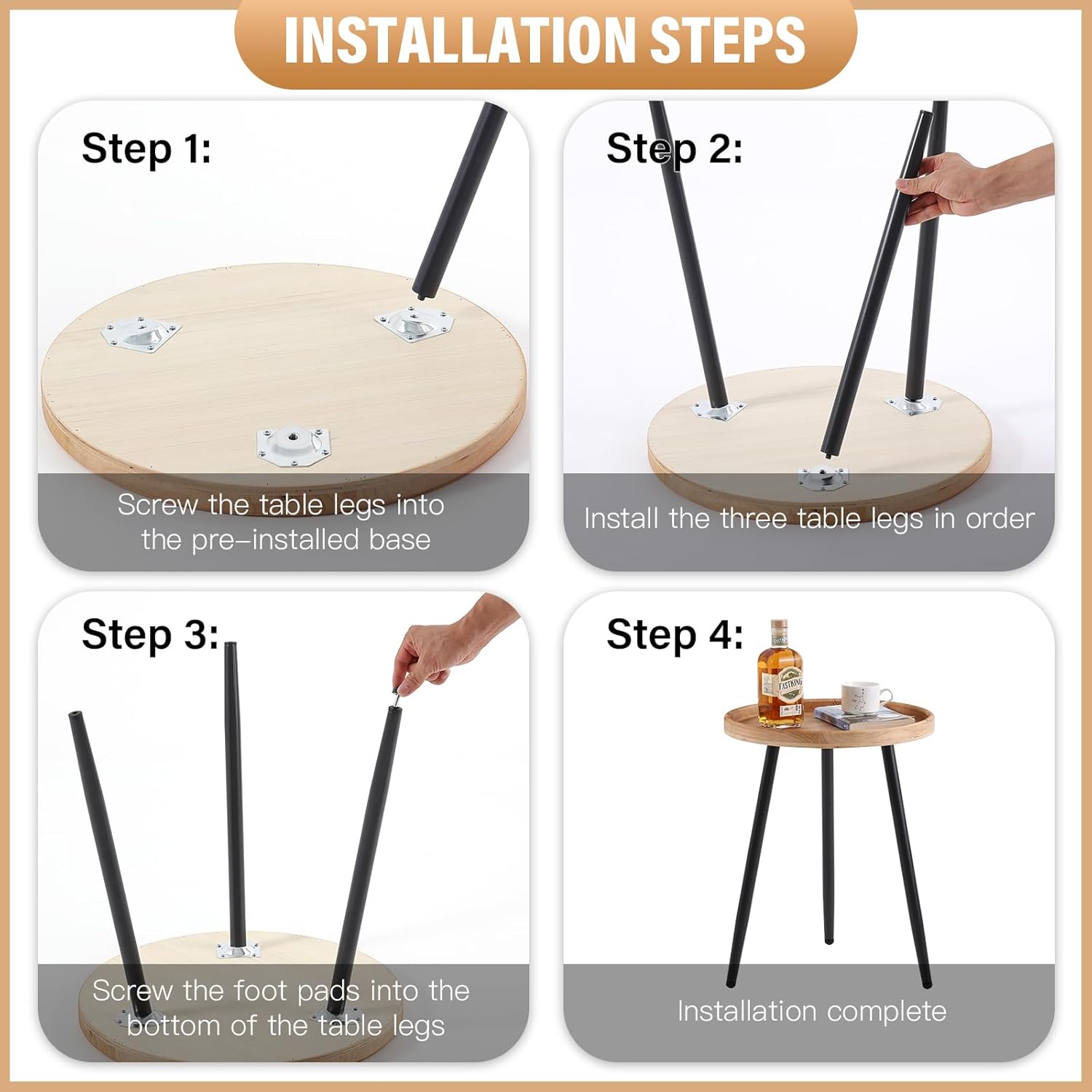 - 【Easy Few Minutes Assembly】The table consists of a tabletop, three table legs, and three foot pads. Super easy to assemble and can be set up in just a few minutes. No tools required! The durable quality wood material gives the table a 50-pound weight capacity.