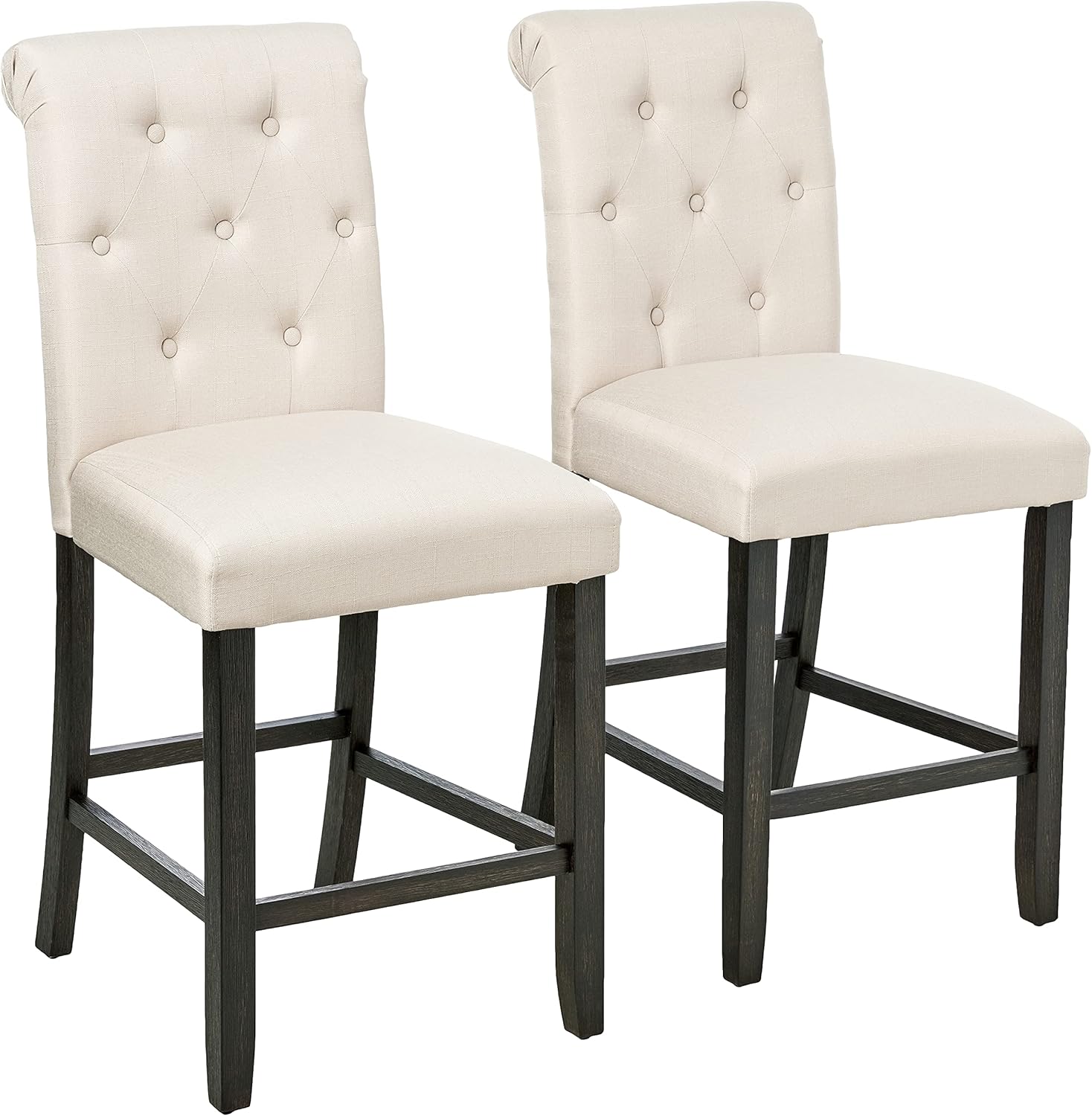 Roundhill Furniture Hendley Solid Wood Tufted Counter Height Stools, Set of 2, Tan