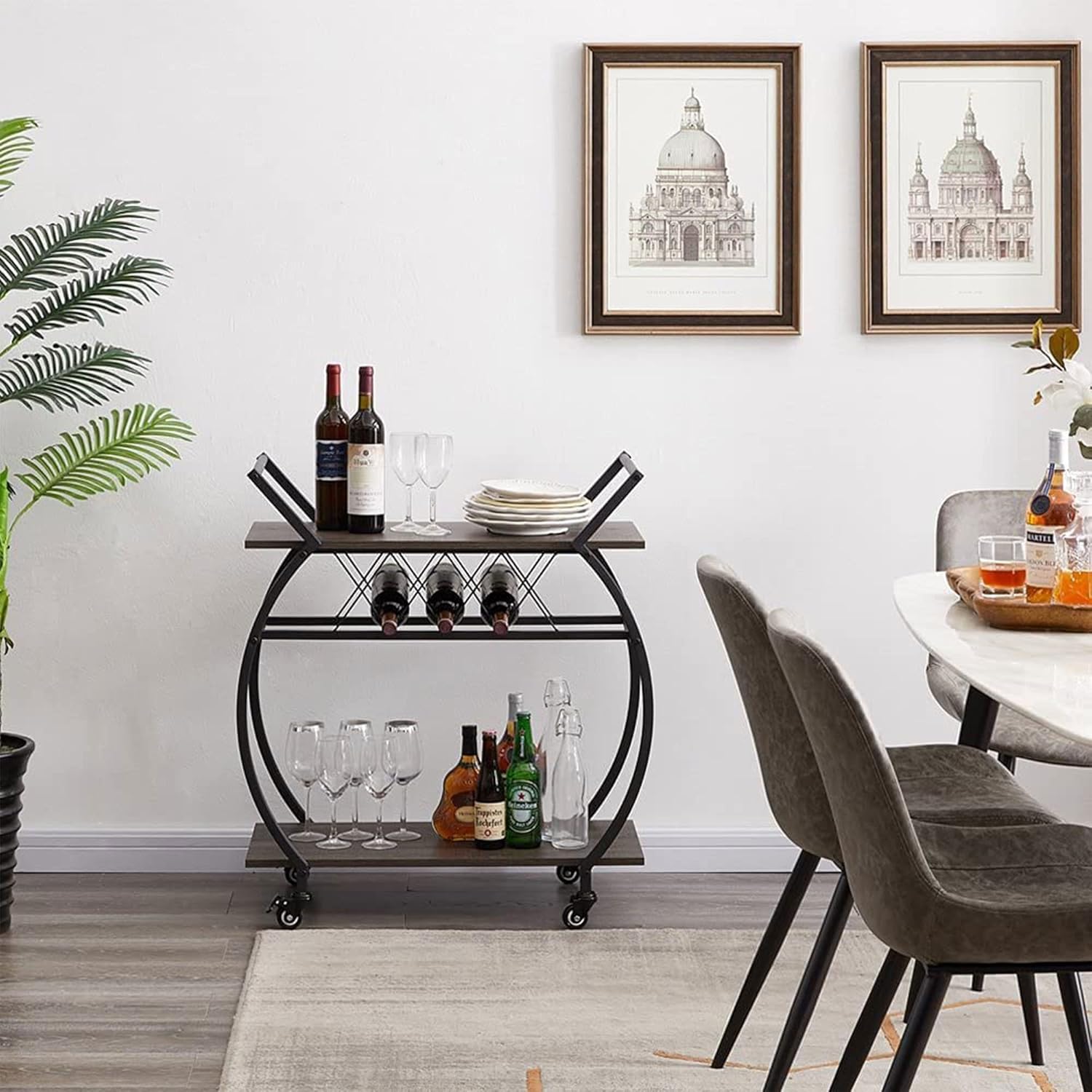 - Spacious Shelves to Hold More Items and Utility Bar Cart with Wine Rack to Prevent Oxidation: The industrial coffee cart table is designed with spacious tabletop and 2 tiers shelves to hold your coffee maker, wine and snacks for parties. Comes with a wine rack which hold up to 3 bottles of wine horizontally to keep the cork wet and prevent oxidation.