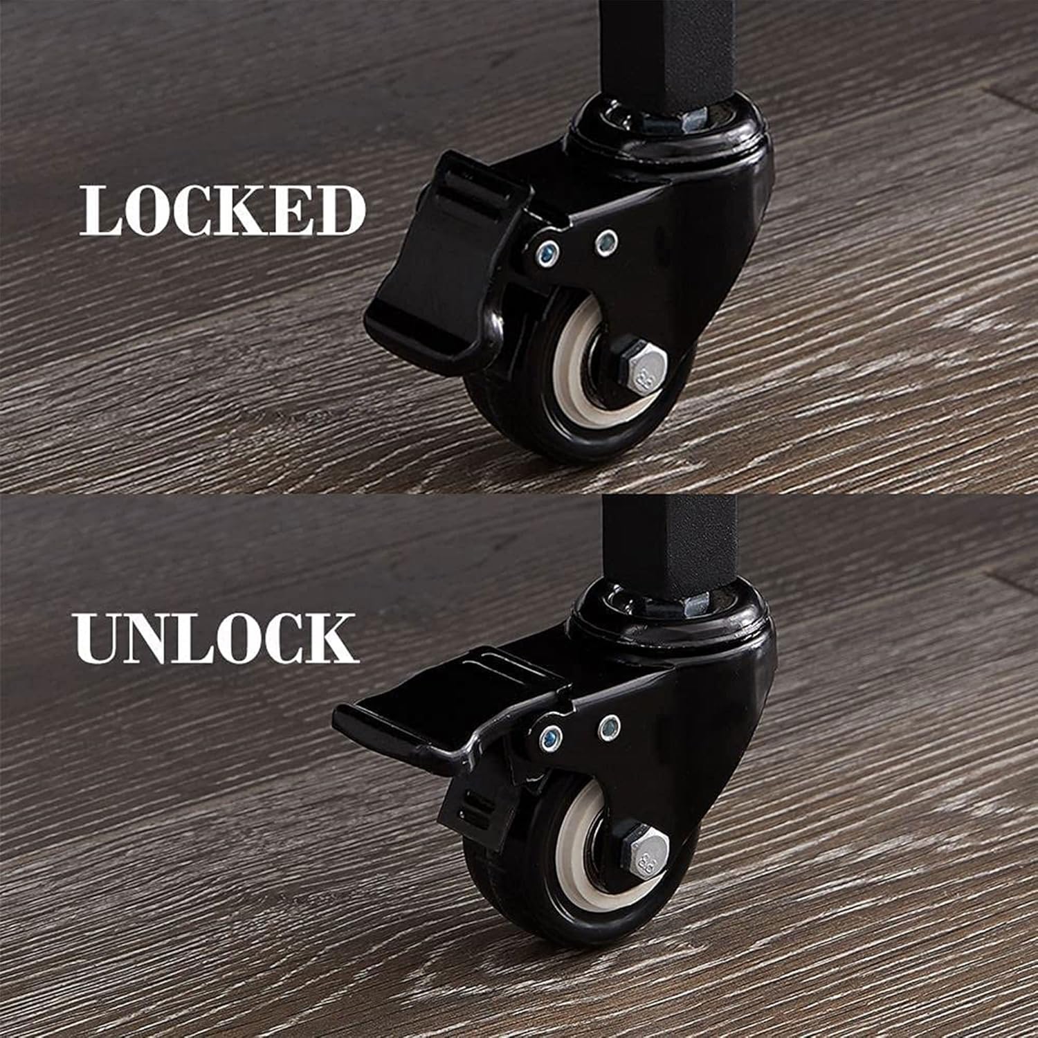 - Enhance Maneuverability and Increase Excellent Control and Safety: The free front wheels of the kitchen island cart enhancde maneuverability, meanwhile the ergonomic rear wheels feature 2 lockable brakes, giving you excellent control and increasing safety.