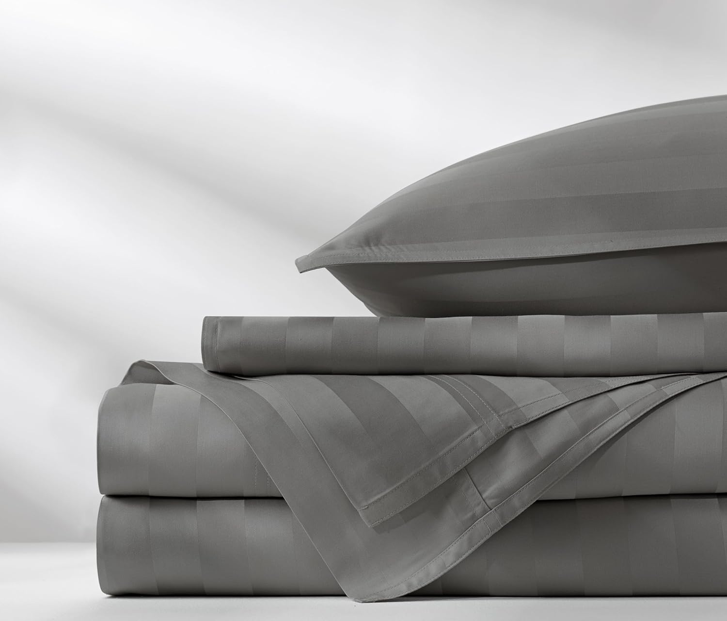 King Sheets by Pure Bamboo, Genuine 100% Organic Viscose Derived from Bamboo Bed Sheet Set, Luxuriously Soft & Cooling, Double Stitching, Lifetime Quality Promise (King, Jacquard Stone)