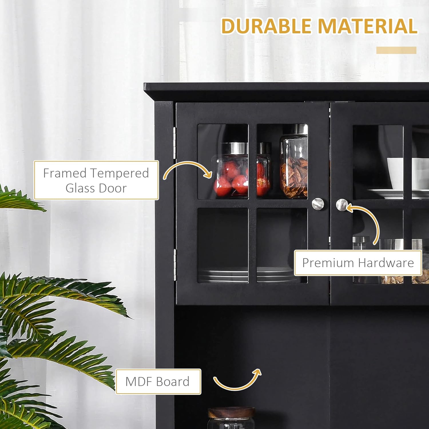 HOMCOM Elegant Buffet with Hutch, Kitchen Pantry Storage Cabinet with Framed Glass Door Drawer and Microwave Space, Black