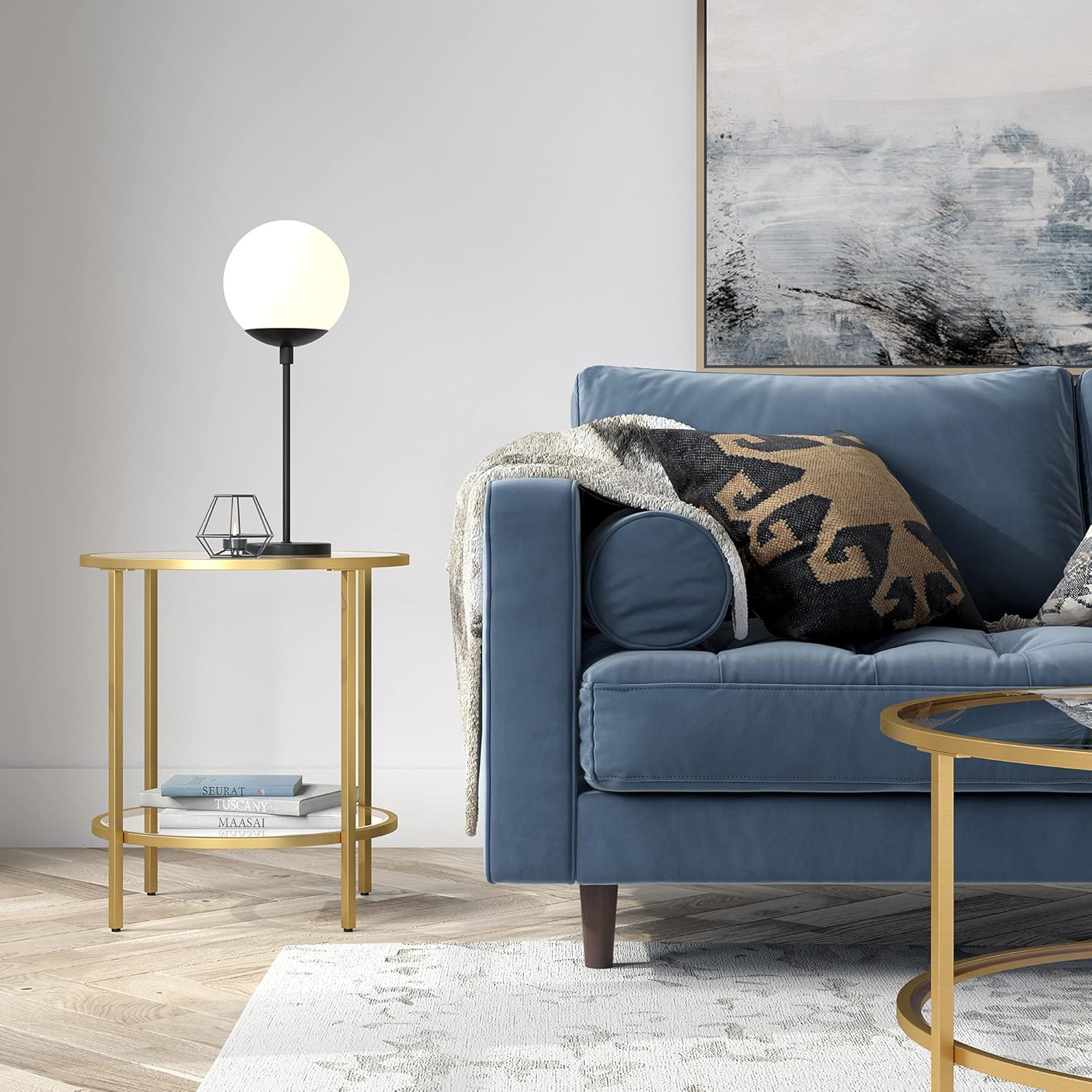 Henn&Hart 20" Wide Round Side Table with Glass Shelf in Brass, Table for Living Room, Bedroom