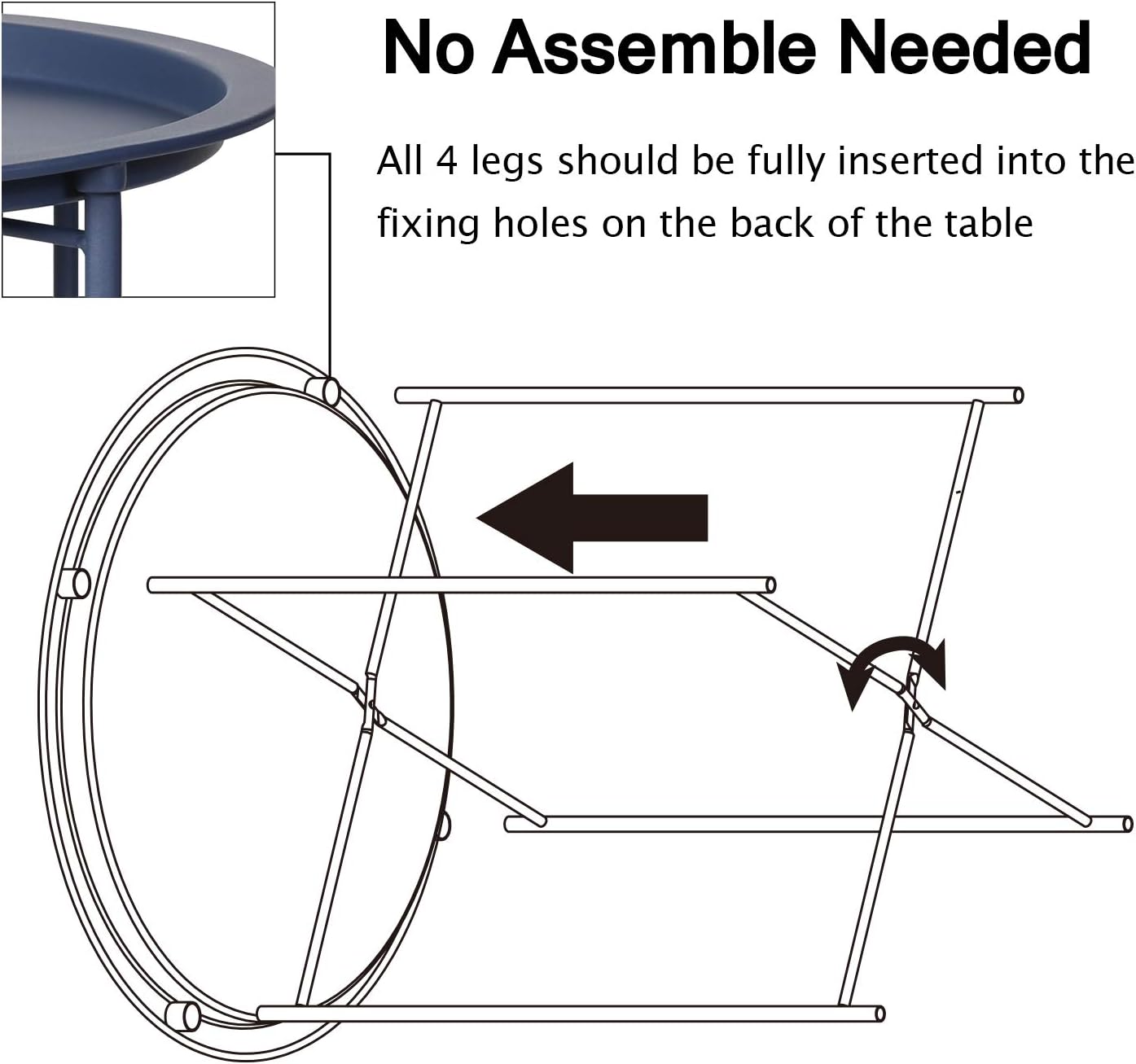VECELO Side/End Table, Folding Round Metal Anti-Rust and Waterproof Outdoor or Indoor Tray for Living Room Bedroom Balcony and Office, 1 PCS, Blue