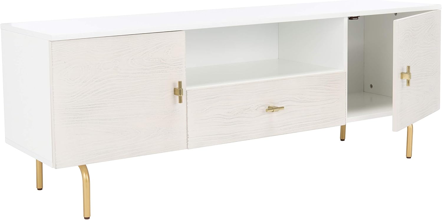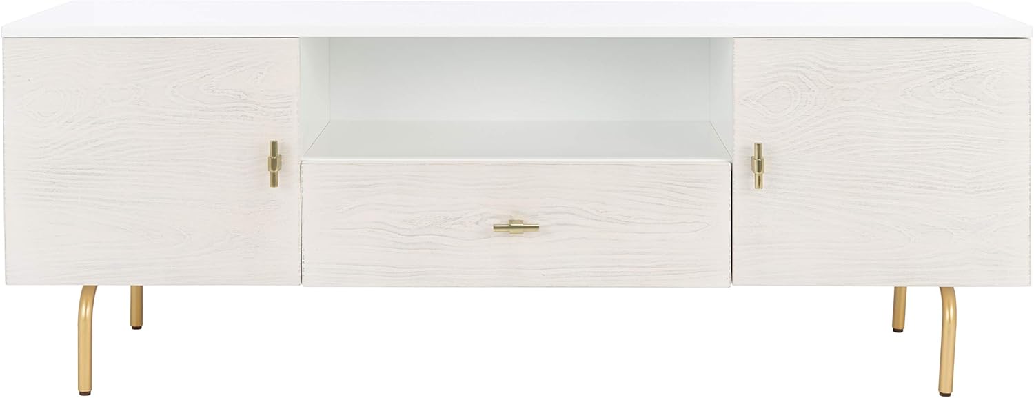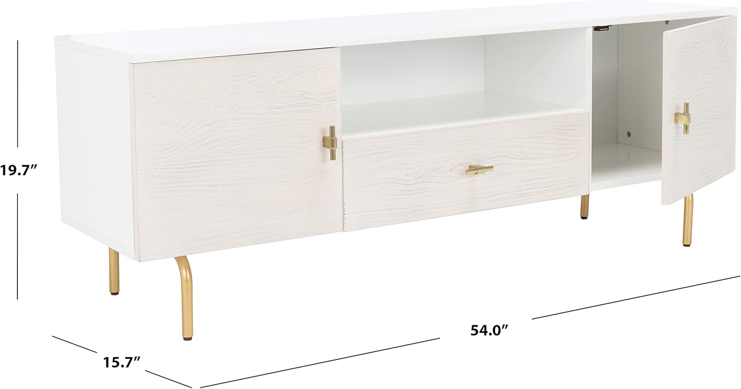 SAFAVIEH Genevieve TV Stand for up to 65" Flatscreen – White & White Washed Finish, Mid-Century Modern Storage Cabinet, Entertainment Media Console (MED5000C)