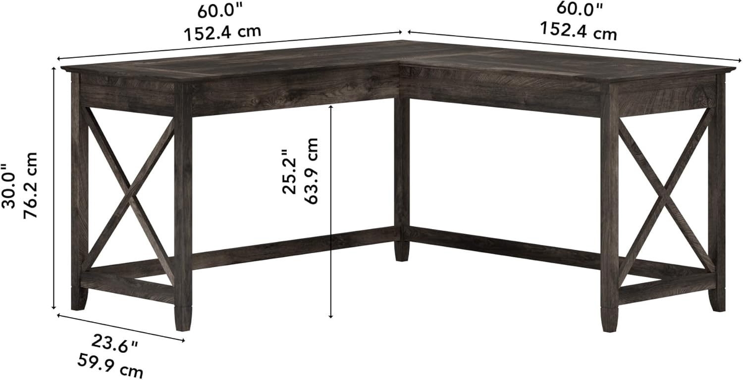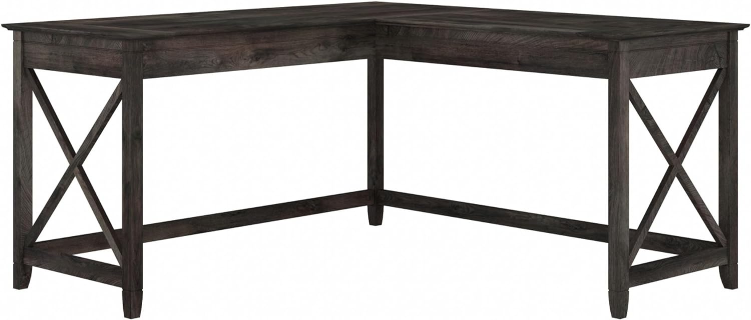 Bush Furniture Key West L Shaped Desk, 60-inch Modern Farmhouse Writing Desk for Home Office