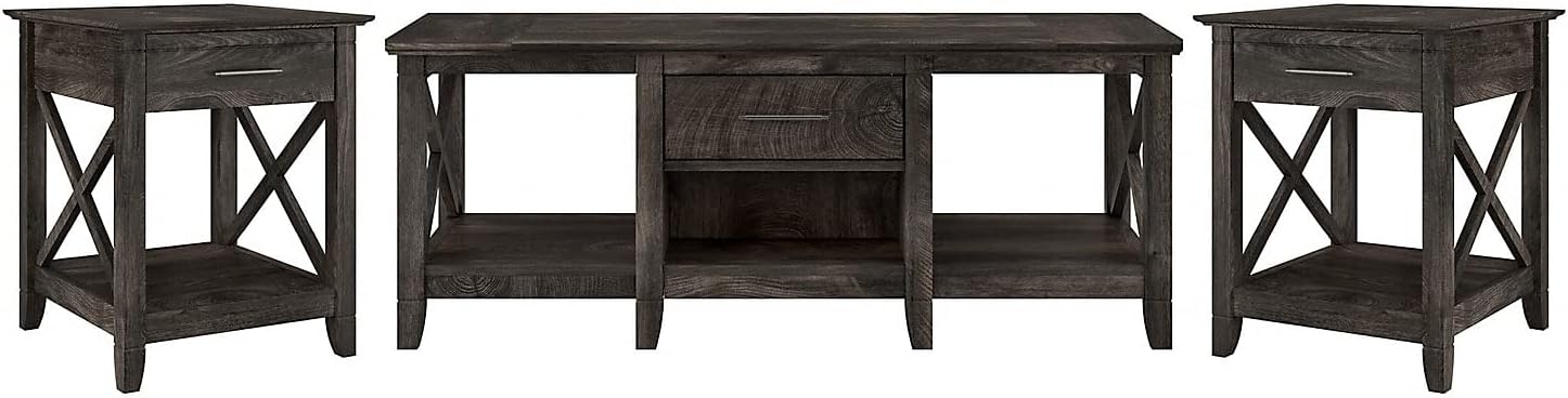 Bush Furniture Key West Coffee Table with Set of 2 End Tables in Dark Gray Hickory