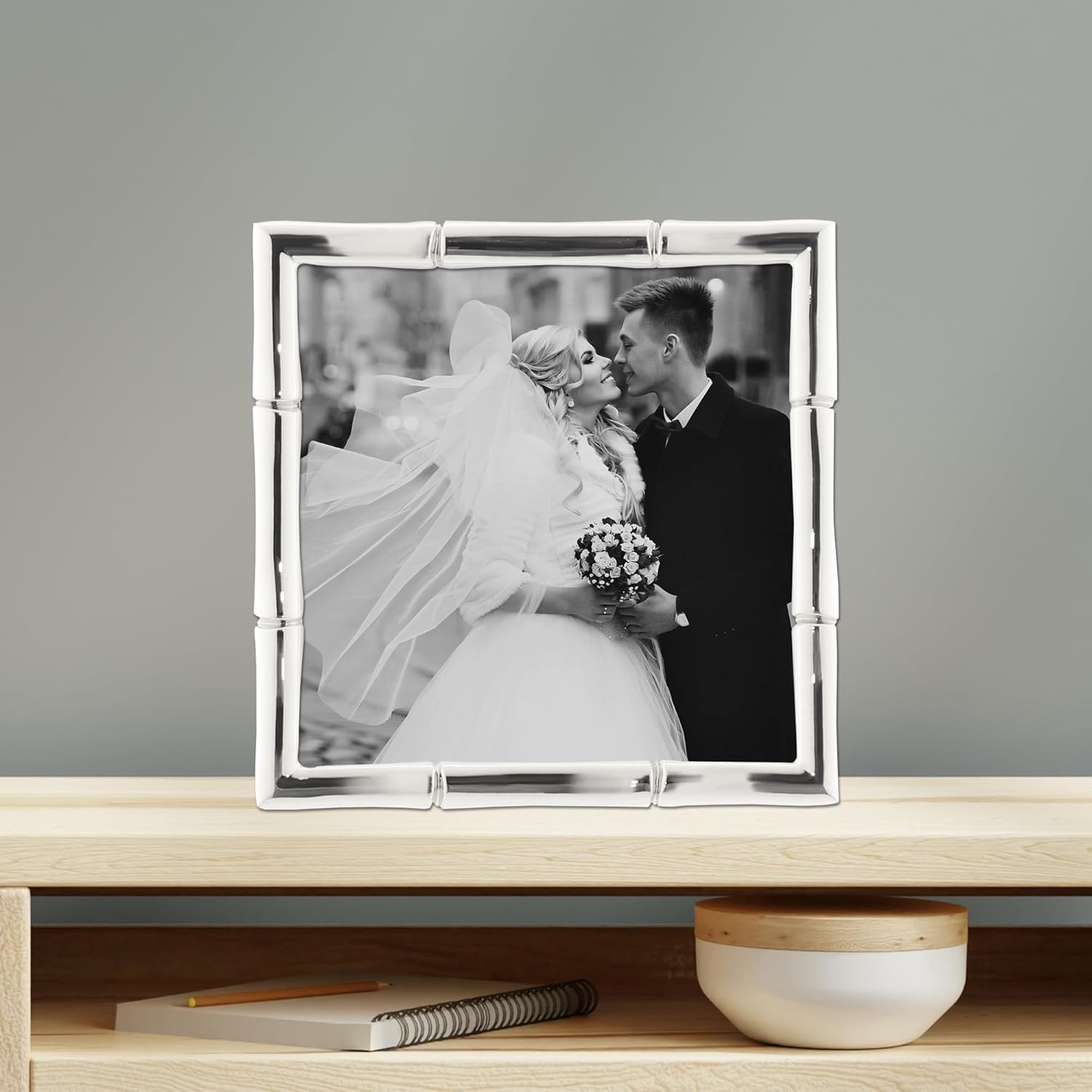 Lawrence Frames Bamboo Design Metal Frame, 4x4, Silver