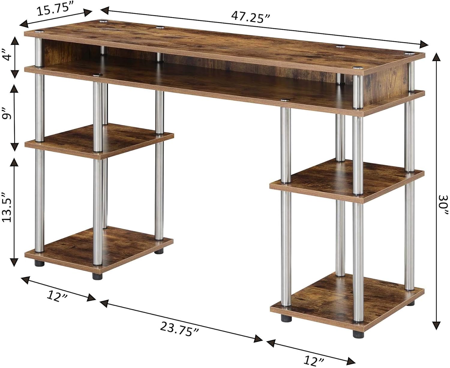 Convenience Concepts Designs2Go No Tools Desk Home Office Desk with Shelves, Corner Shelf Vanity Desk Computer Desk Nail Table for Nail Tech - 47.25" L x 15.75" W x 30" H, Barnwood