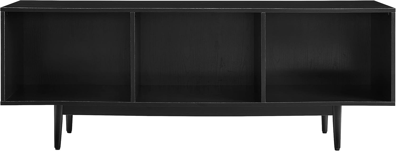 - MID-CENTURY MODERN: With its classic black finish and tapered legs equipped with adjustable levelers, this record storage media console captures the timeless appeal of mid-century design.