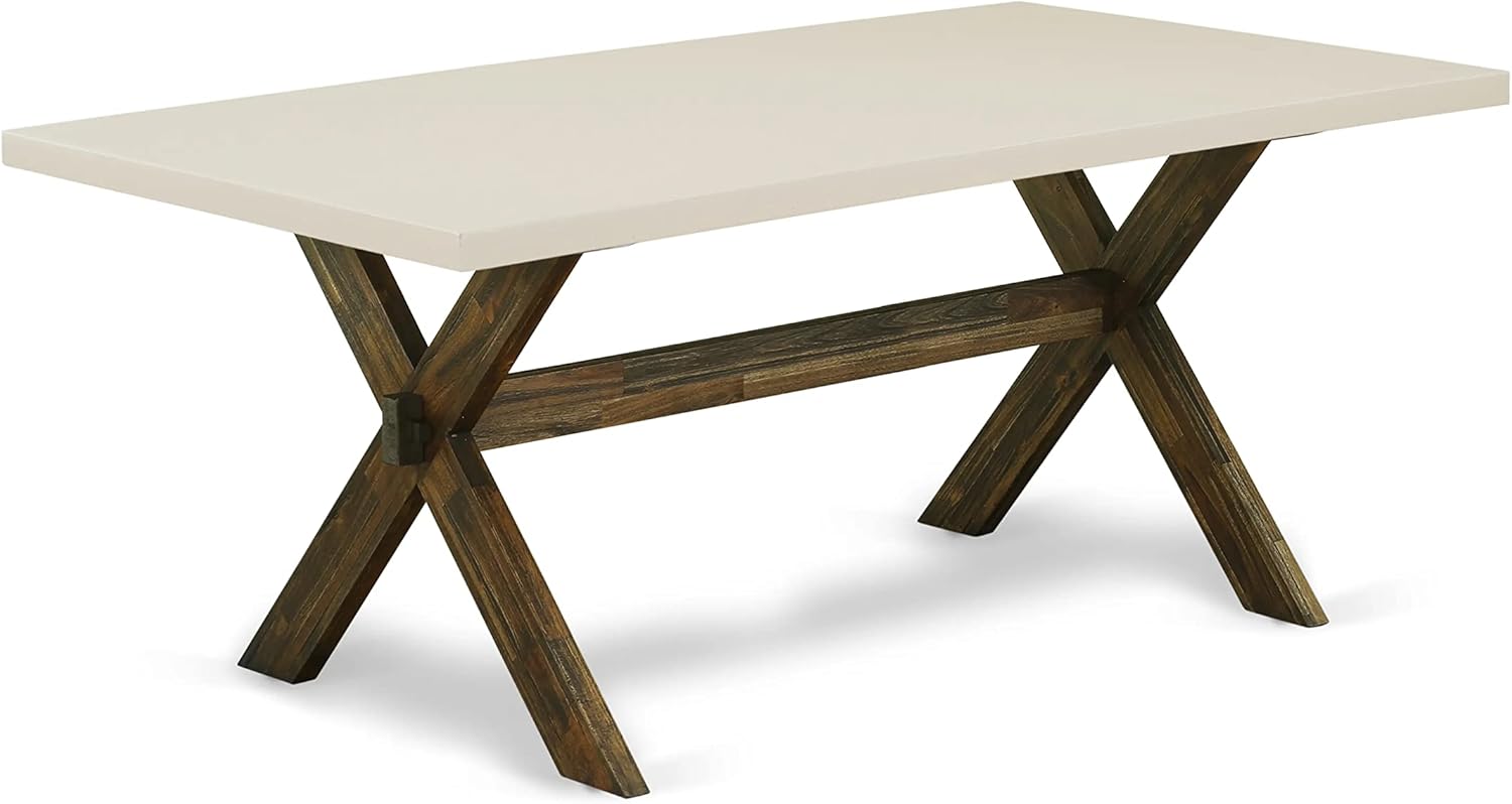 East West Furniture X727VE703-7 7 Piece Modern Dining Table Set Consist of a Rectangle Wooden Table with X-Legs and 6 Brown Linen Fabric Upholstered Parson Chairs, 40x72 Inch, Multi-Color