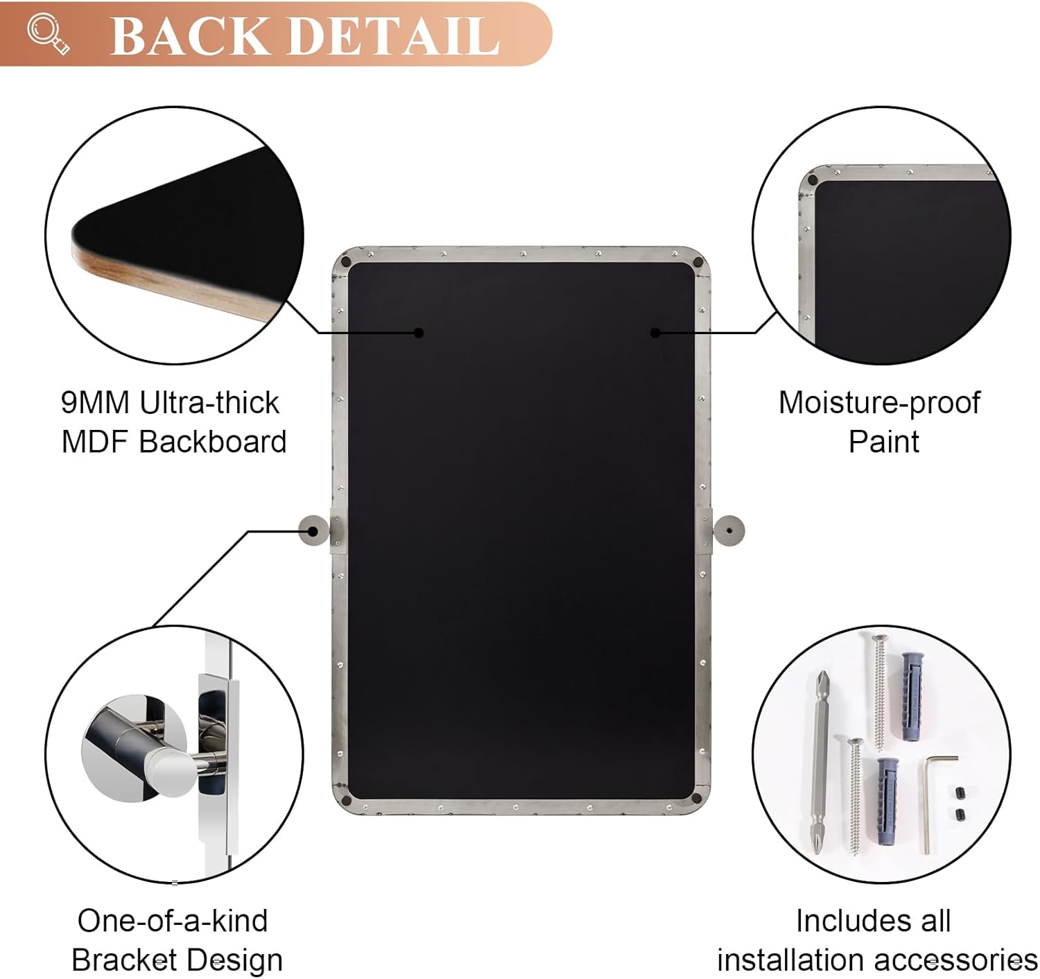 - EASY TO INSTALL: The upgraded bracket simplifies the installation process, enabling rounded rectangle mirror to be accomplished within just a few minutes; All accessories are meticulously packed in a SMALL BOX with a RED tape; Contact us for missing hardware