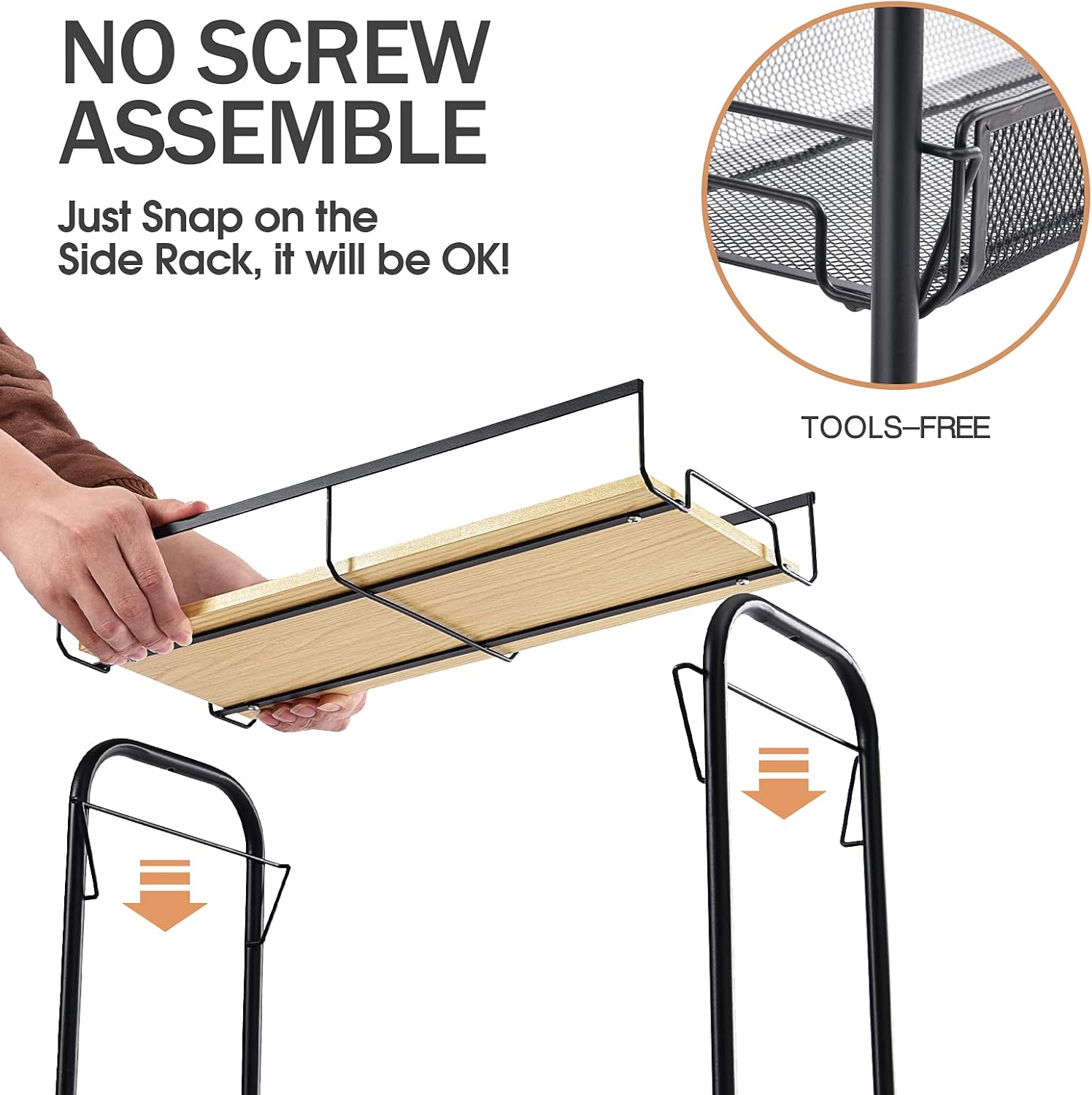 - ❉ WHAT ABOUT ASSEMBLE | This slide-out narrow cart can be easy assembled with no screws or tools required. Just snap the mesh baskets on the side rack, and insert 4 wheels up straight into the rack, so it can rotate freely 360 degrees.
