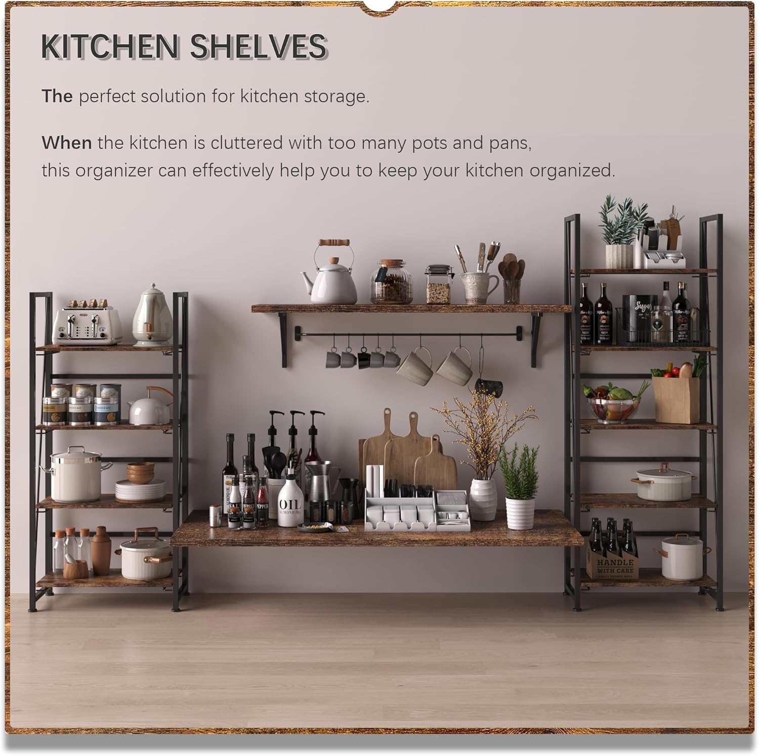 - 【Simplicity and practical folding bookshelf】it is a industrial style design with simplicity and retro, which can not only make your room in good order, but also occupy few space. You can put it in any space of your home, such as living room, bedroom, corridor, kitchen, balcony, etc