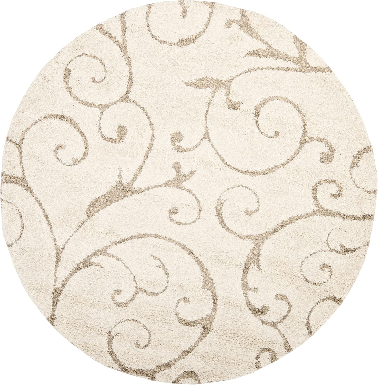 SAFAVIEH Florida Shag Collection Area Rug - 3'3" Round, Cream & Beige, Scroll Design, Non-Shedding & Easy Care, 1.2-inch Thick Ideal for High Traffic Areas in Living Room, Bedroom (SG455-1113)