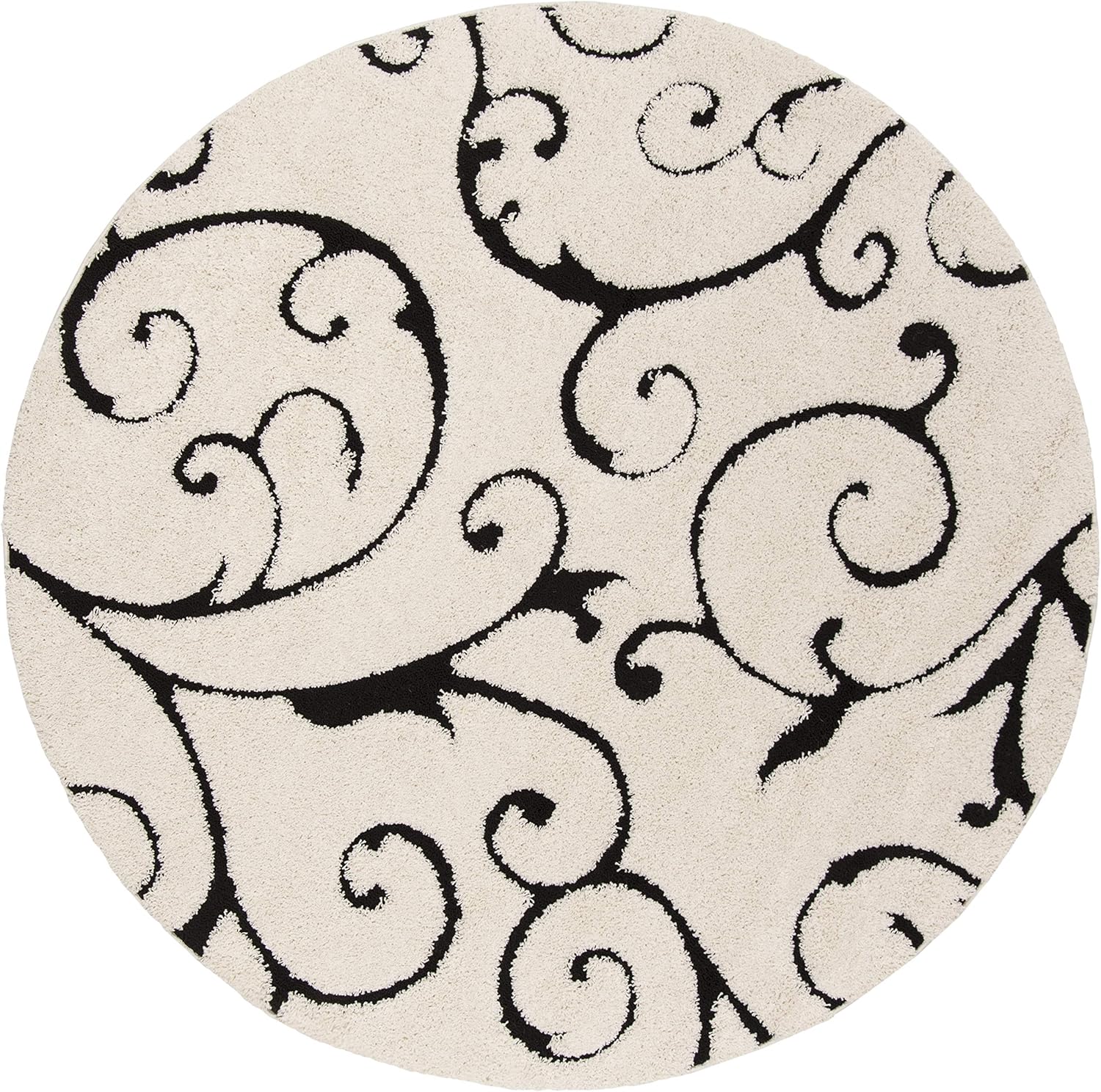 SAFAVIEH Florida Shag Collection 8' Round Ivory/Black SG455 Scrolling Vine Graceful Swirl Textured Non-Shedding Living Room Bedroom 1.2-inch Thick Area Rug